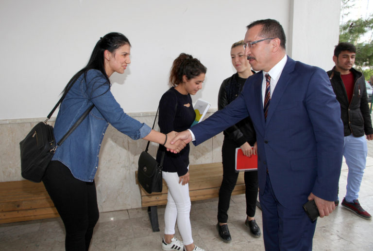 Rektör Bağ, ayrıca okul çevresinde ve kantinde öğrencilerle yakından ilgilenerek bir süre sohbet etti.