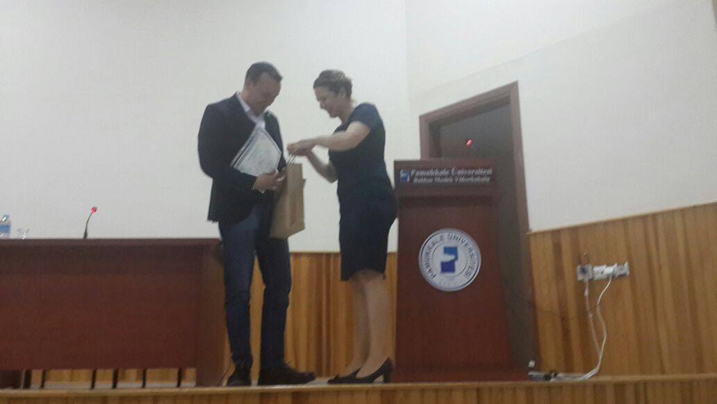 Konferans sonunda Buldan Meslek Yüksekokulu Moda Tasarım Bölümü Öğretim Görevlisi Dr. Gizem Karakan Günaydın, Kemal Sarıkaya’ya teşekkür ederek, teşekkür belgesi sundu.