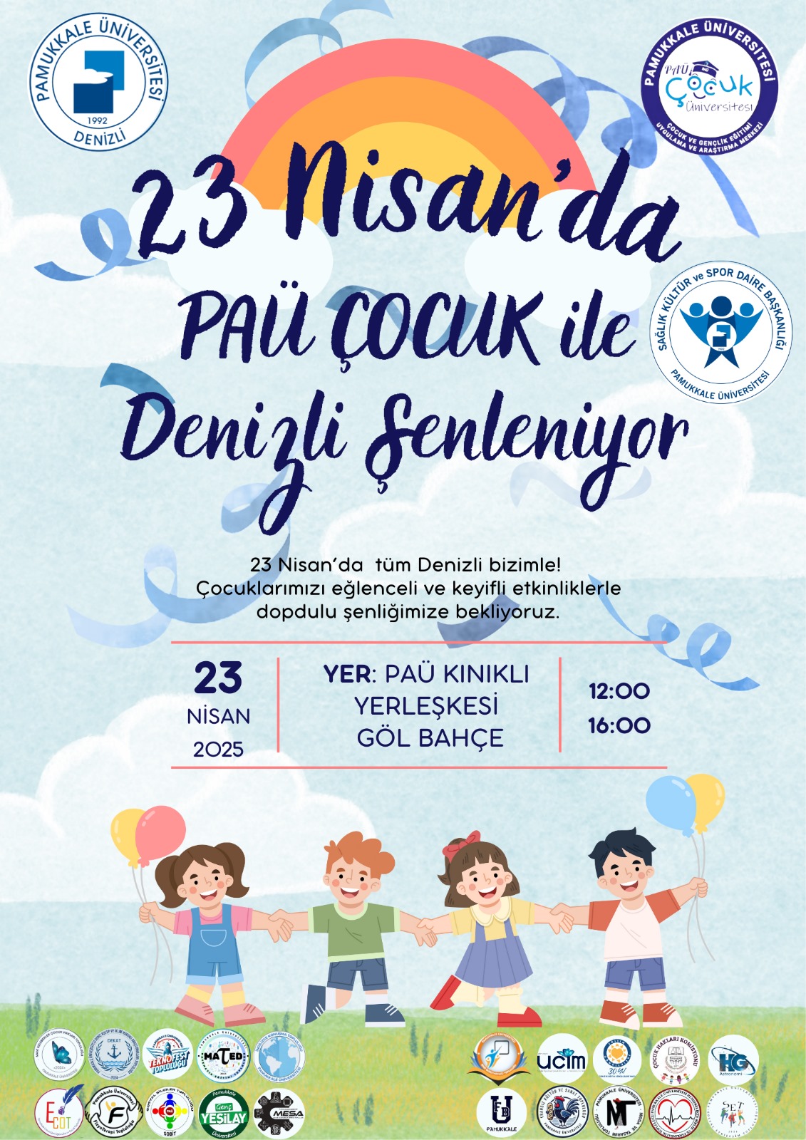 Mandala boyama, baloncuk boyama, jenga atölyesi, müzik eşliğinde el yıkama etkinliği, çuval yarışması, PAÜ Çocuk Üniversitesi (Pamukkale Üniversitesi Çocuk ve Gençlik Eğitimi Uygulama ve Araştırma Merkezi) tarafından 23 Nisan 2025 çarşamba günü gerçekleştirilmiş olan "23 Nisan'da PAÜ Çocuk ile Denizli Şenleniyor" isimli şenlik etkinliği kapsamında gerçekleştirilmiştir.
