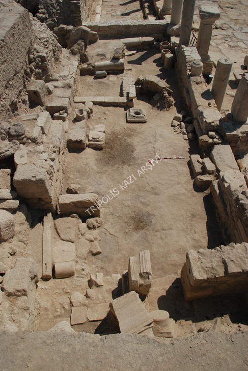 Along the east side of the Hierapolis Street extends a north-south portico, which was designed and built together with it. It assumed its present look uncovered through excavations with the arrangements made in the fourth century. It was roofed with a timber and tile construction carried by piers of two drums resting on the stylobate on the west and monolithic columns resting on postaments on the east wall. Partially uncovered in 2013, the total area exposed until now measures 4.50x29.85 m. Its floor is partially paved with baked clay bricks and it is partially of compressed earth.