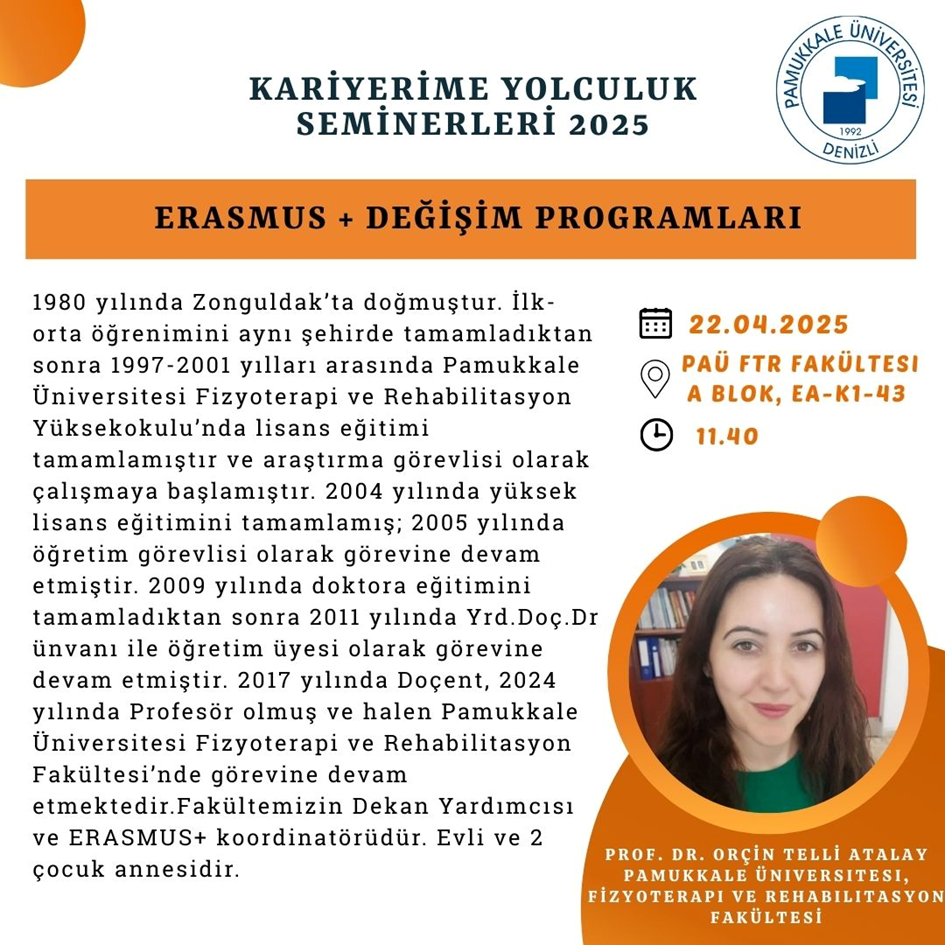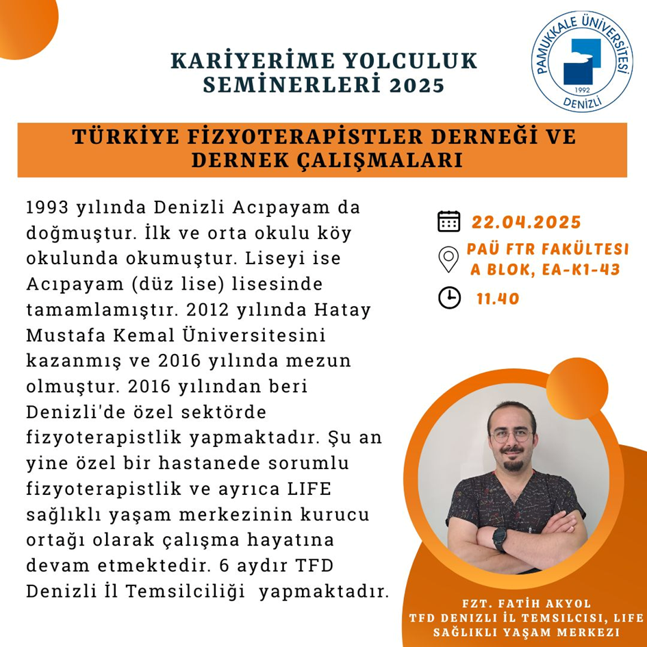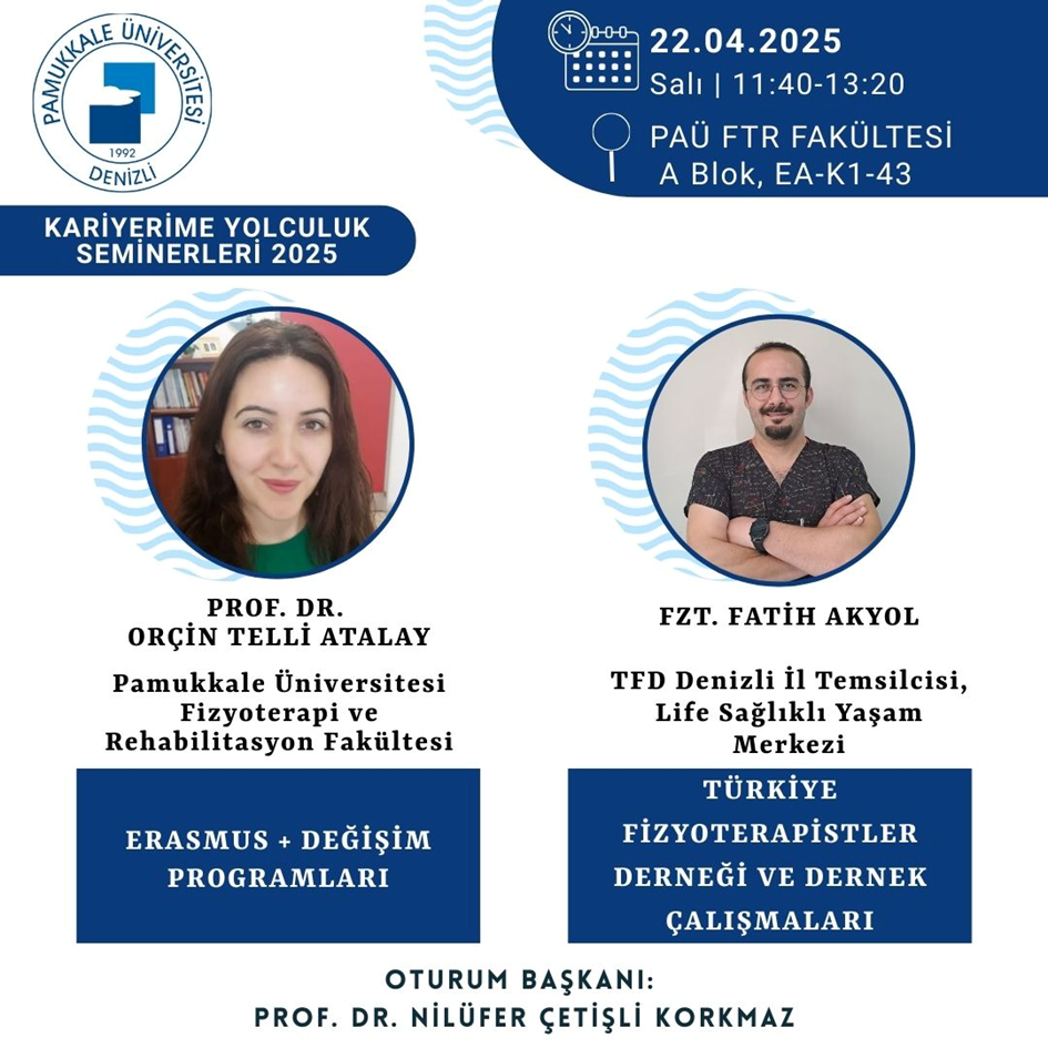 Kariyerime Yolculuk Seminerleri Seminer 24 Nisan 2025 - 01 Mayıs 2026 PAÜ Bölümümüzde 22.04.2025 tarihinde Kariyerime Yolculuk Seminerimiz değerli hocalarımızın katılımıyla gerçekleştirilmiştir.