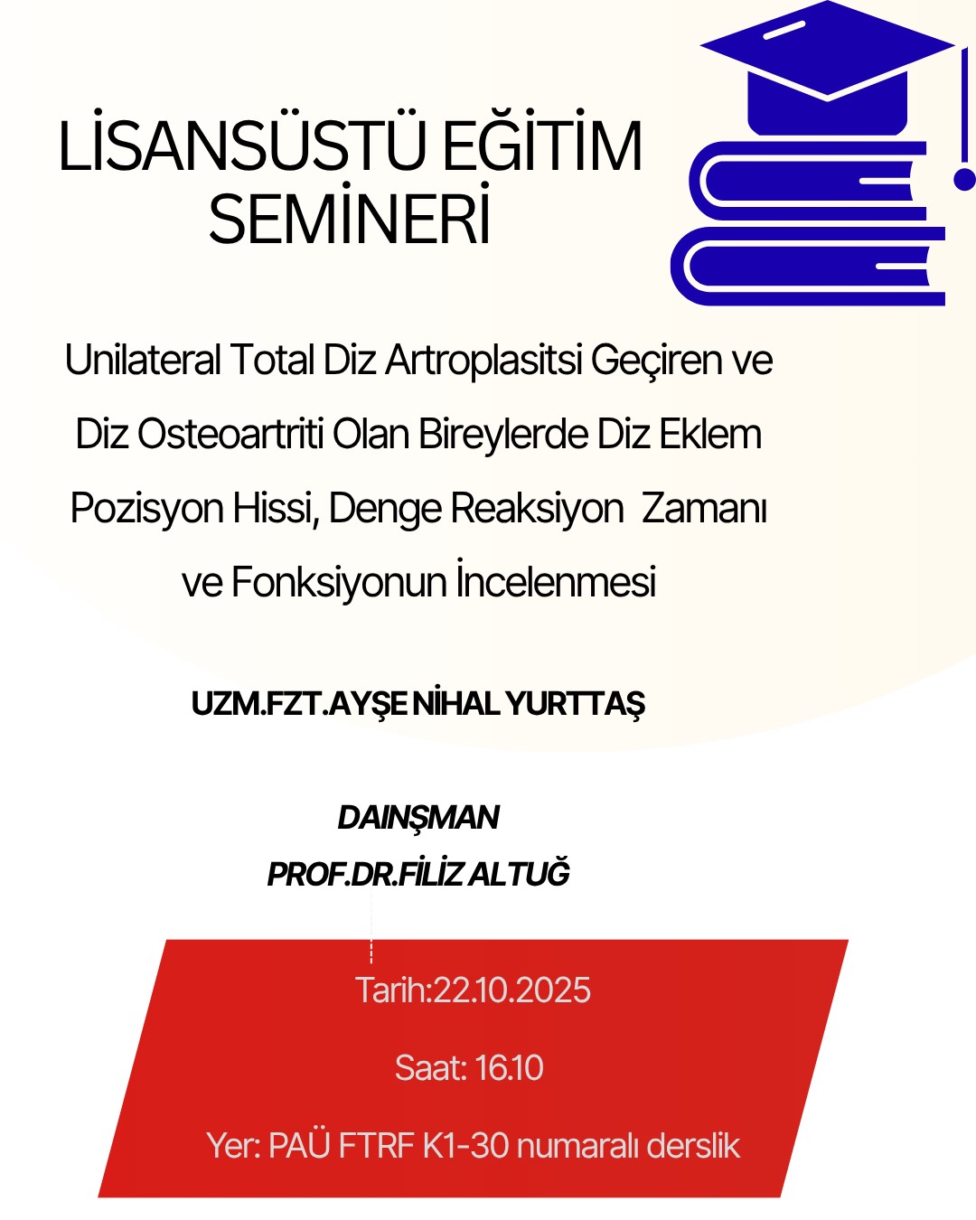 LİSANSÜSTÜ EĞİTİM SEMİNERİ Seminer 21 Ekim 2025 - 21 Ekim 2027 Fizyoterapi ve Rehabilitasyon Fakültesi