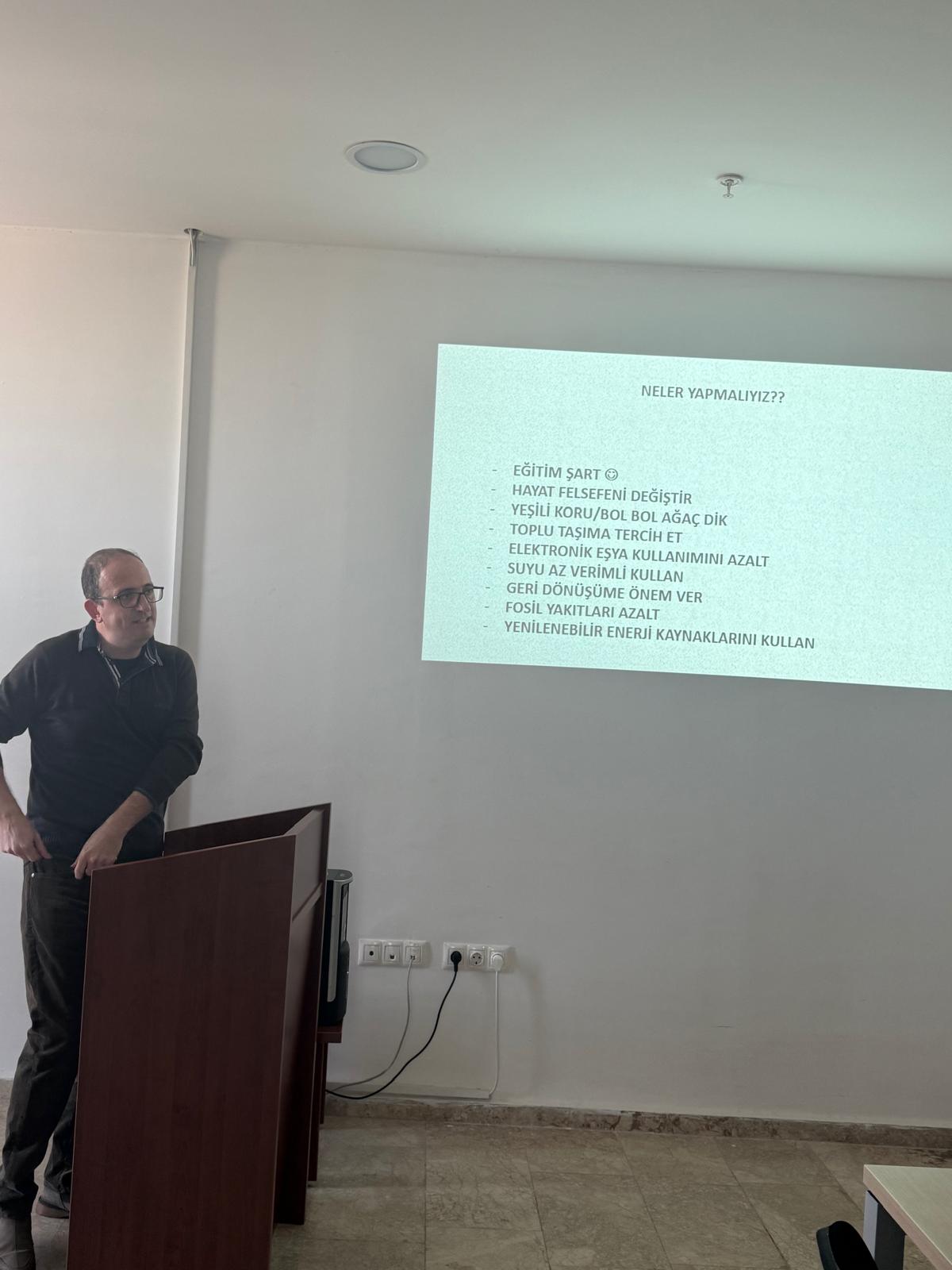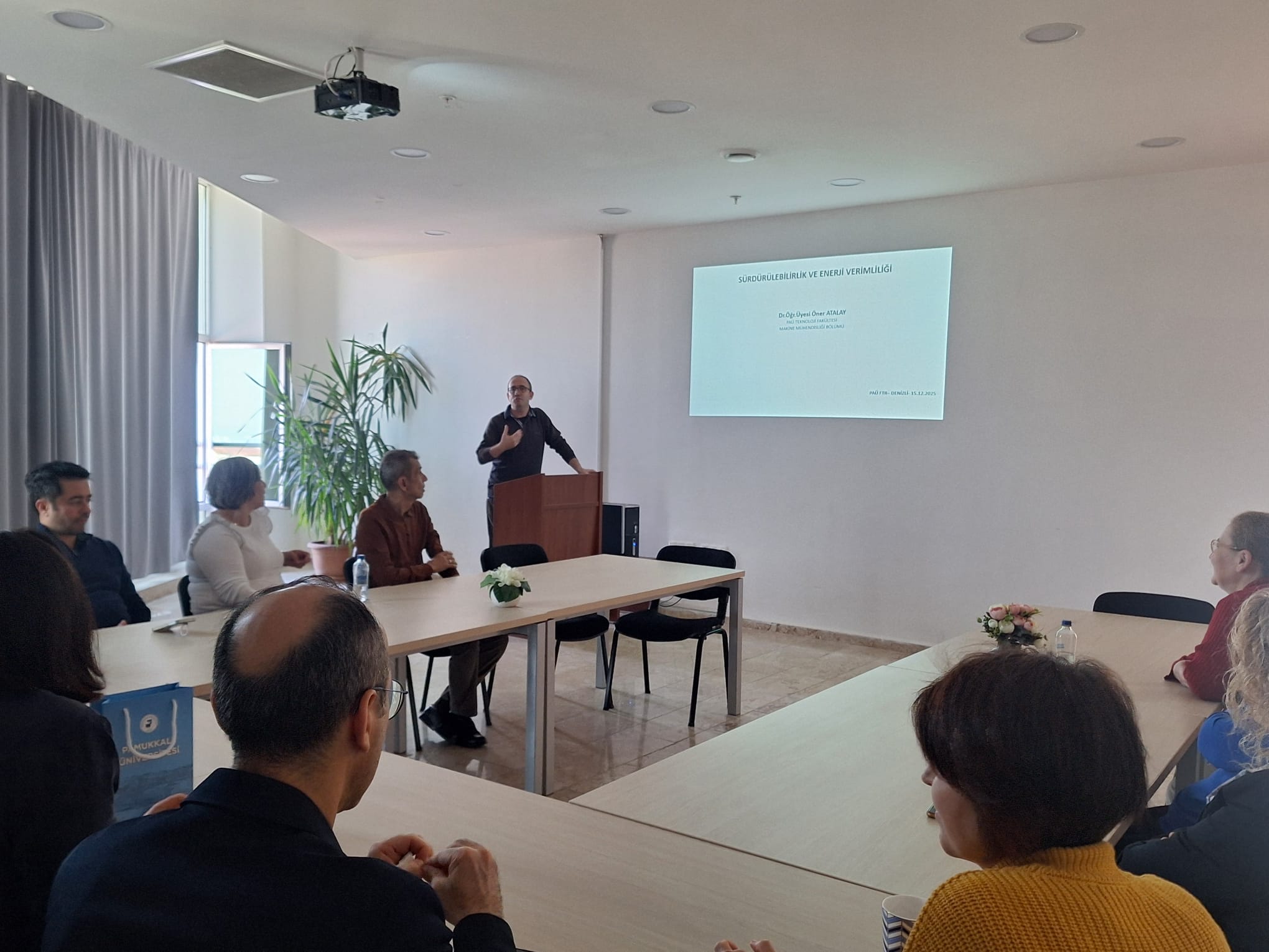 Fakültemiz öğretim elemanları ve idari personeline yönelik, sürdürülebilirlik faaliyetleri kapsamında Pamukkale Üniversitesi Teknoloji Fakültesi öğretim üyesi Dr. Öner ATALAY tarafından " Sürdürülebilirlik ve Enerji Verimliliği" semineri gerçekleştirildi. Seminerde sürdürülebilirlik faaliyetlerinin önemi, verimlilik, yenilenebilir enerji kaynakları ve enerji tasarrufunun önemi anlatıldı. Etkinliğin sonunda öğrencilerimize yönelik eğitimlerin yapılması ve diğer işbirlikleri konusunda karara varıldı ve Fizyoterapi ve Rehabilitasyon Fakültesi Dekanı Prof.Dr. Ummuhan Baş Aslan, Dr.Öğr.Üyesi Öner ATALAY'ateşekkür belgesini takdim etti.