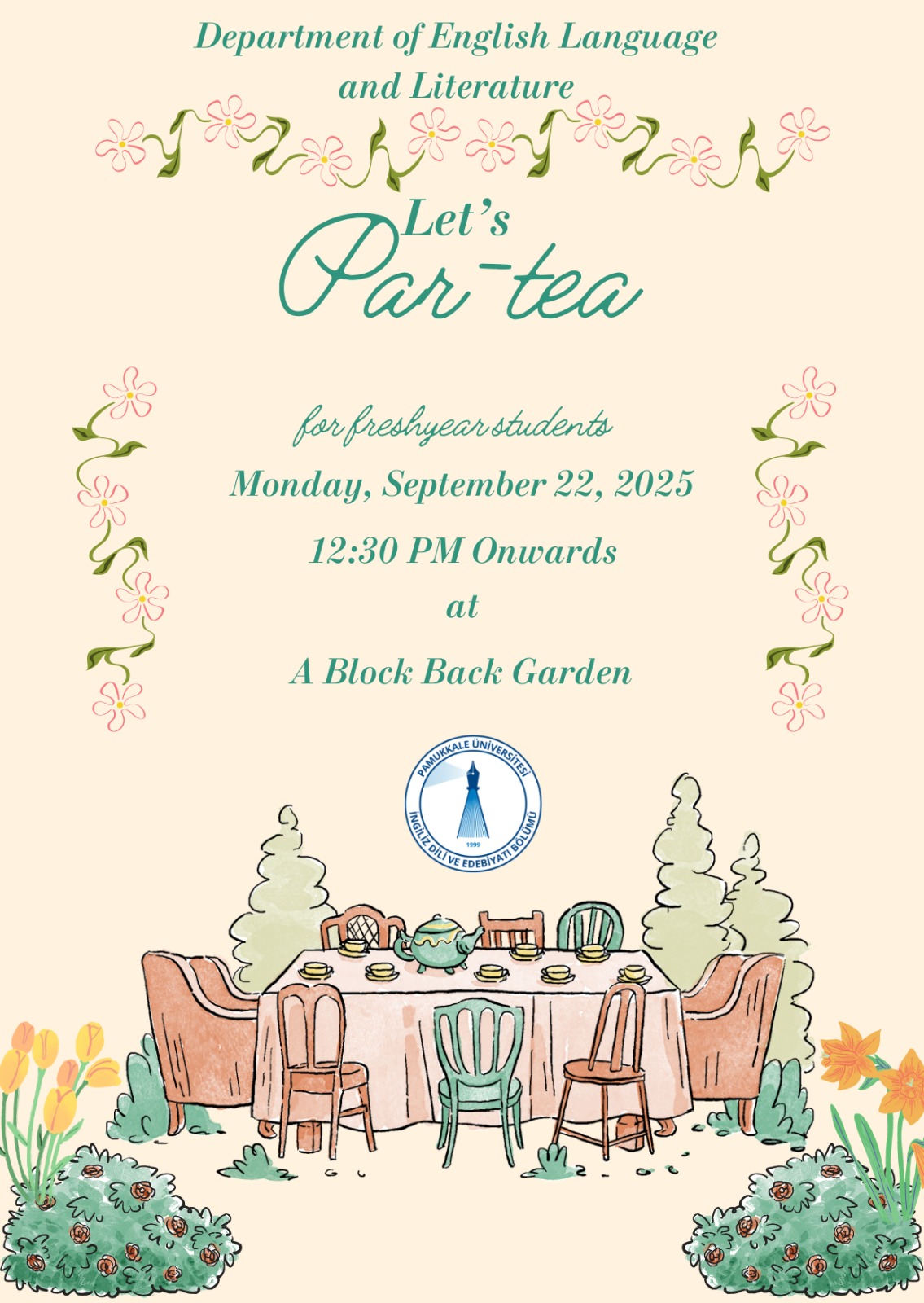 The Pamukkale University (PAU) Department of English Language and Literature made a warm start to the new academic year on Monday, September 22, 2025. The traditional welcome tea, titled "Let's Par-tea," was held in the peaceful atmosphere of the garden behind A Block to welcome new students and bring together current students with the academic staff.