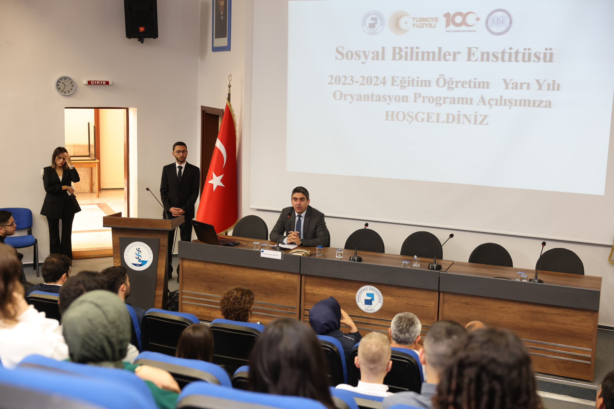 Enstitümüz, Cumhuriyetin 100. Yılı Etkinlikleri kapsamında 1 Kasım 2023 Çarşamba Saat 10:00'da İnsan ve Toplum Bilimleri Fakültesi İsmail Çetişli Konferans Salonu'nda 2023 - 2024 Eğitim Öğretim Güz Yarıyılı Oryantasyon ve İlk Ders Etkinliği gerçekleştirdi. Etkinliğe çok sayıda lisansüstü öğrenci ve öğretim üyeleri katıldı. Enstitü Müdürü Prof. Dr. Durmuş AKALIN enstitü ile ilgili bilgiler verdikten sonra öğrencilerin akademik hayatında dikkat etmeleri gereken hususları içeren açılış dersini anlattı.