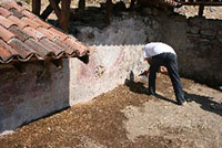 Fresklerin Korunması Amacıyla Yapılan Çalışmalar St. Jean Kilisesi Atriumu ile İsabey Camii arasındaki alanda 1985 yılında kazılıp ortaya çıkarılan Üç nefli bazilika çevresindeki oda ve salonlarla birlikte manastırın merkezi kısmında yer alır. Kare planlı (13.00X13.00 m.) bazilikanın Erken Bizans Çağı bazilikalarına mahsus yarım daire şeklinde büyük bir apsisi vardır (çap 5.20 m.). Batıda nartex ve olasılıkla küçük bir atrium’a sahip olan bazilikanın duvarları bazı kısımlarda 2.00 m. yükseklikte kalabilmiştir. Orta nefin tabanı plaka taş ve daha yüksek olan yan neflerin tabanı ise tuğla döşemelidir. Orta nefle yan nefler arasında üç sütun vardır. Devşirme sütunlar ve başlıklar yapının ahşap beşik çatısını taşımaktadır. Ortalama 1.50 m yükseklikte kalabilmiş kuzey nefin kuzey duvarındaki freskler mermer taklidi bezemelerle süslüdür. Yeşil, kırmızı ve sarı renklerin kullanıldığı pano şeklindeki fresklerin kazılar sonrasında konservasyonu yapılmış olsa da aradan geçen zaman içinde bozulmalar olmuştur. Bu sezon yeniden ele alınan freskler tümüyle konservasyona tabi tutulmuş ve üzerine nano teknoloji ile üretilmiş koruyucu uygulanmıştır (Resim 15). Daha sonra freskleri tabiat şartlarından korumak amacıyla hem duvarı ve hem de freskleri koruyacak şekilde koruyucu çatı yapılmış ve çatının üzeri alaturka kiremitle kaplanmıştır