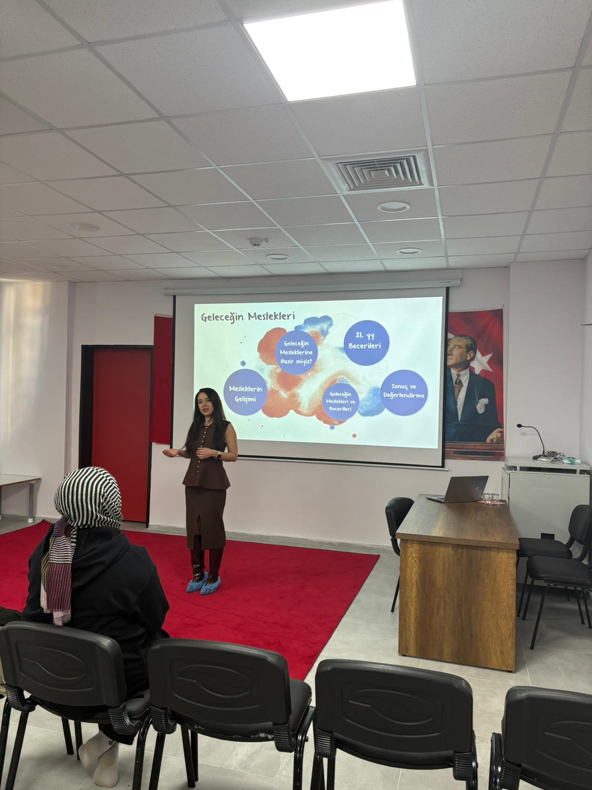 Eğitim kapsamında Özgen Öney, “Çocuklarımızın Geleceği için Geleceğin Meslekleri” konusunda velilere yönelik bilgilendirme yaptı. Programda; hızla dijitalleşen dünyada değişen işgücü piyasası ve mesleklerin gelişimi, gelecekte öne çıkması beklenen meslek alanları, 21. yüzyıl becerileri ile çocukların ilgi ve yetenekleri doğrultusunda kariyer planlamasının önemi ele alındı. Velilerin, çocuklarını bu dönüşüme nasıl hazırlayabileceklerine ilişkin yol gösterici bilgiler paylaşıldı. Velilerin ilgiyle takip ettiği eğitim, karşılıklı etkileşim ve soru-cevap bölümüyle tamamlandı.