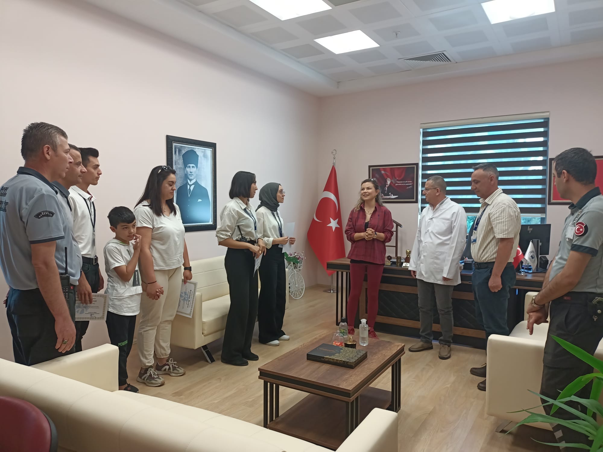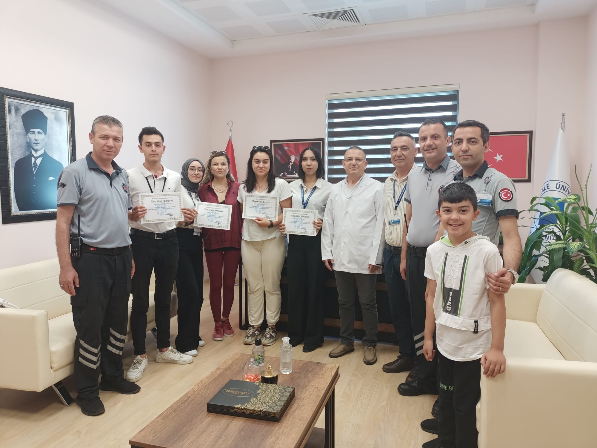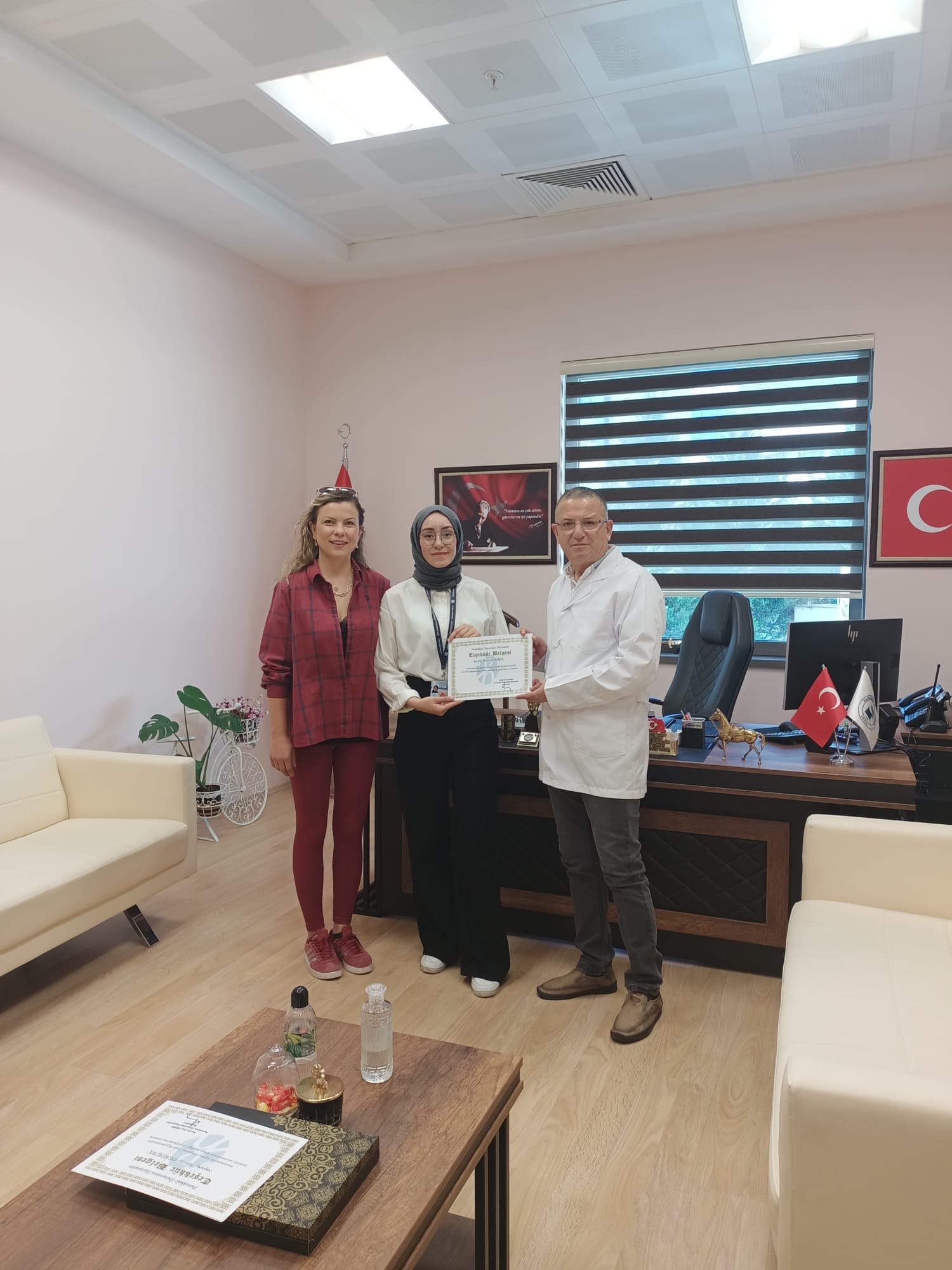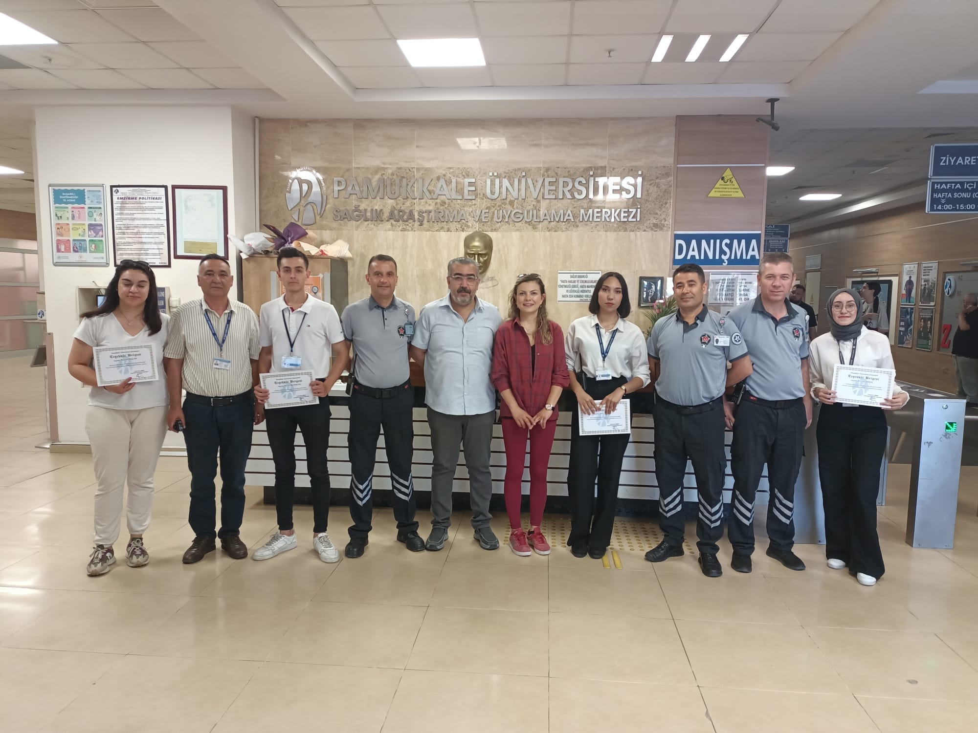 PAÜ Hastanelerinden Acıpayam MYO İME Öğrencilerine Teşekkür Güncellenme Tarihi: 06 Haziran 2024 PAÜ Acıpayam MYO Mülkiyet Koruma ve Güvenlik Bölümü Özel Güvenlik ve Koruma Programı’ndan PAÜ Hastanelerinde İşletmede Mesleki Eğitim yapan dört öğrenci hastane yönetimi ve hastane güvenlik birimi tarafından teşekkür belgesine layık görüldü. Özel güvenlikle ilgili birimlerde özverili ve gayretli bir performans sergileyen öğrencilere belgeleri Hastane Başmüdürü Süleyman GÖKMEN tarafından takdim edildi. Mülkiyet Koruma ve Güvenlik Bölümü Başkanı Aylin ARIK’ ın da eşlik ettiği takdim sırasında Hastane Güvenlik Amiri Erdoğan Yılmaz, Birim Sorumlusu İbrahim Yaşamış ve Hastane Müdür Yardımcısı İsmail Alpay da öğrencilere teşekkürlerini iletti.