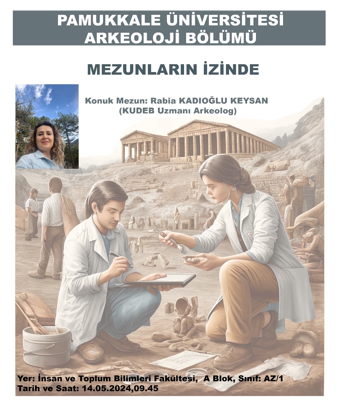 Pamukkale Üniversitesi Arkeoloji Bölümü öğrencileri ile bölümümüzün mezunlarını buluşturan "Mezunların İzinde" etkinliğimizin bu haftaki diğer konuğu KUDEB Uzmanı Arkeolog Rabia KADIOĞLU-KEYSAN. Sizlere rehber olabilecek bu keyifli söyleşimizde tüm öğrencilerimizi aramızda görmekten mutluluk duyacağız.