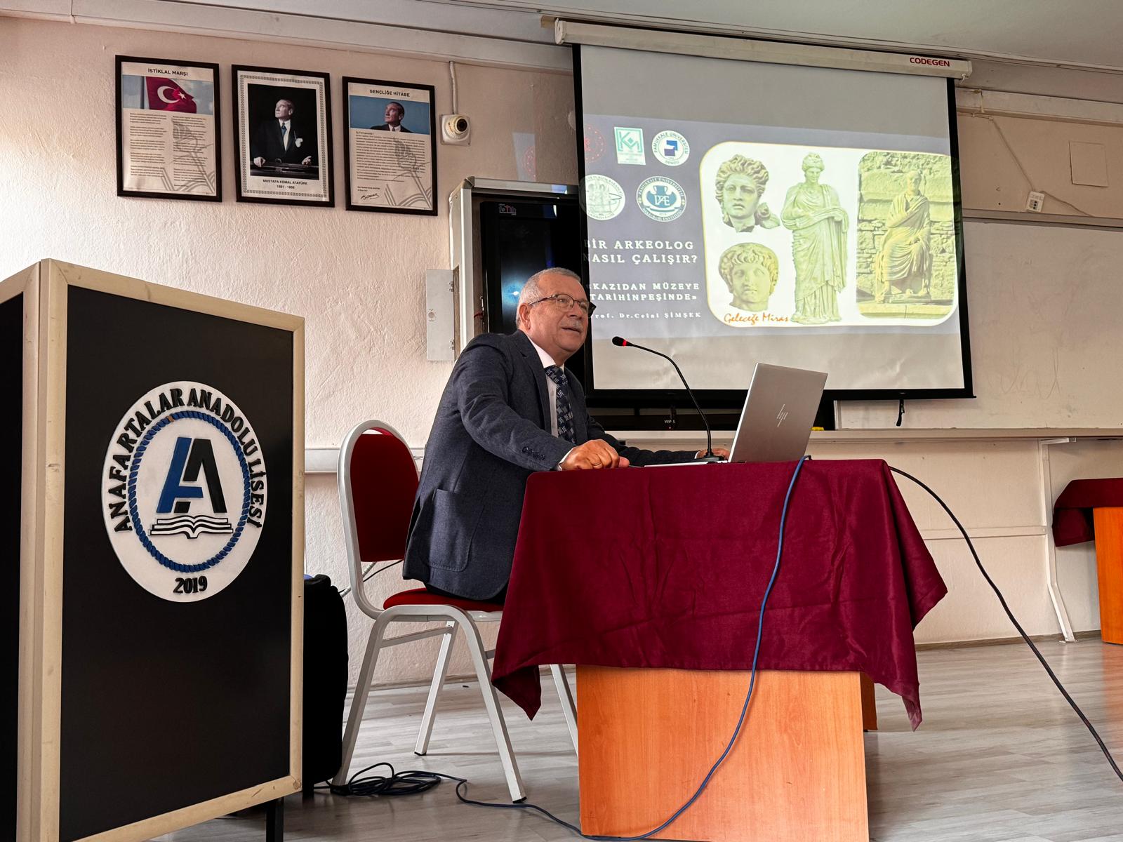 PAU Arkeoloji Bölümü Bölüm Başkanı Prof. Dr. Celal ŞİMŞEK tarafından Anafartalar Anadolu Lisesi'nde "Bir Arkeolog Nasıl Çalışır? Kazıdan Müzeye Tarihin Peşinde" başlıklı konferans düzenlenmiştir. Öğrencilerin arkeolojiye ve arkeologlara dair merak ettiği sorular cevaplandırılmıştır. Ev sahiplikleri için öğretmenlerimize ve öğrencilerine teşekkür ederiz.