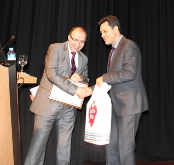 Doç. Dr. İsmail TÜRKOĞLU, "Ölümünün 100. Yılında Gaspıralı İsmail Bey" konulu bir konferans verdi. Konferans sonrası Müdürümüz Doç. Dr. Mithat AYDIN tarafından günün anısına armağan sunulurken.