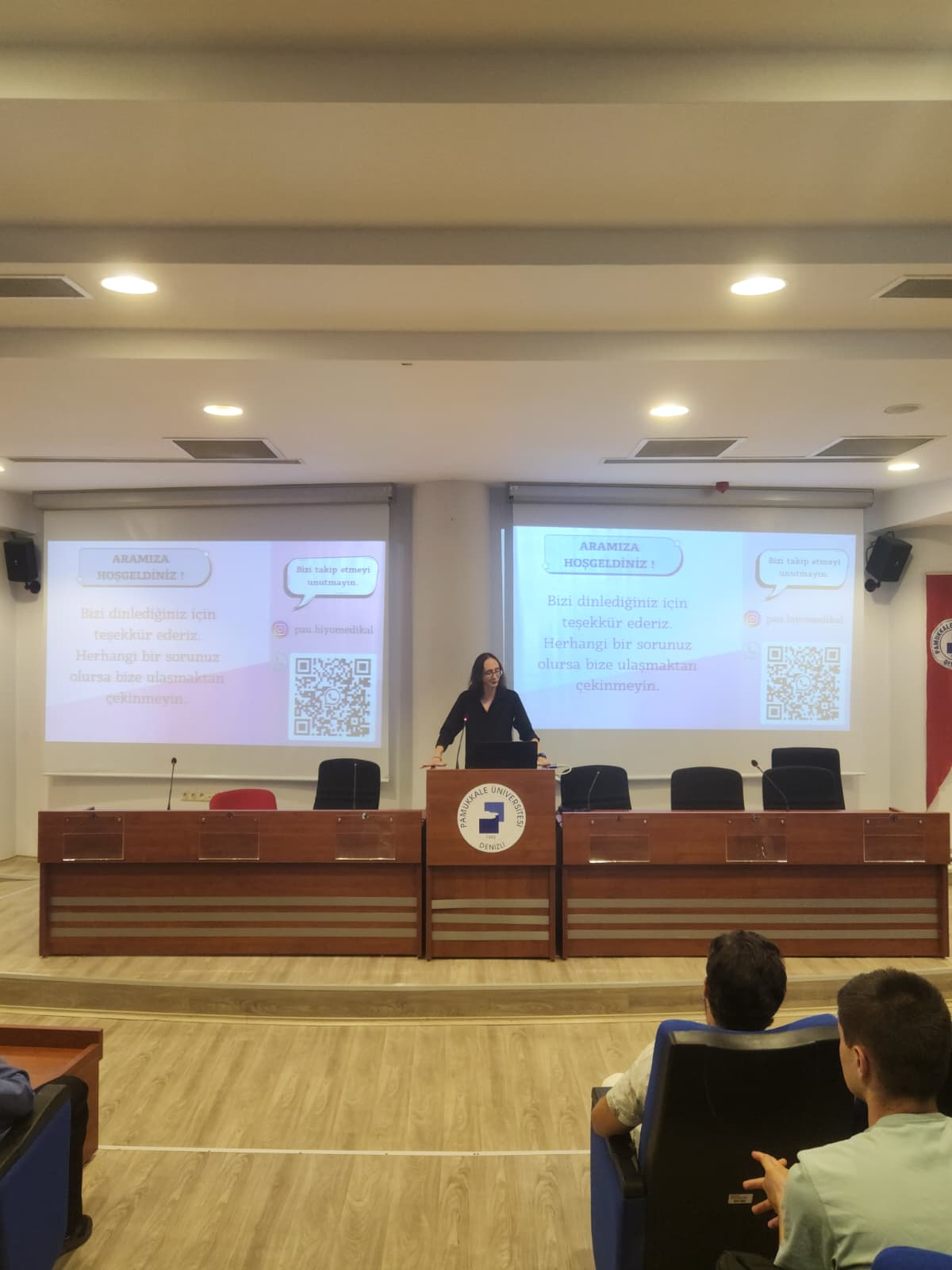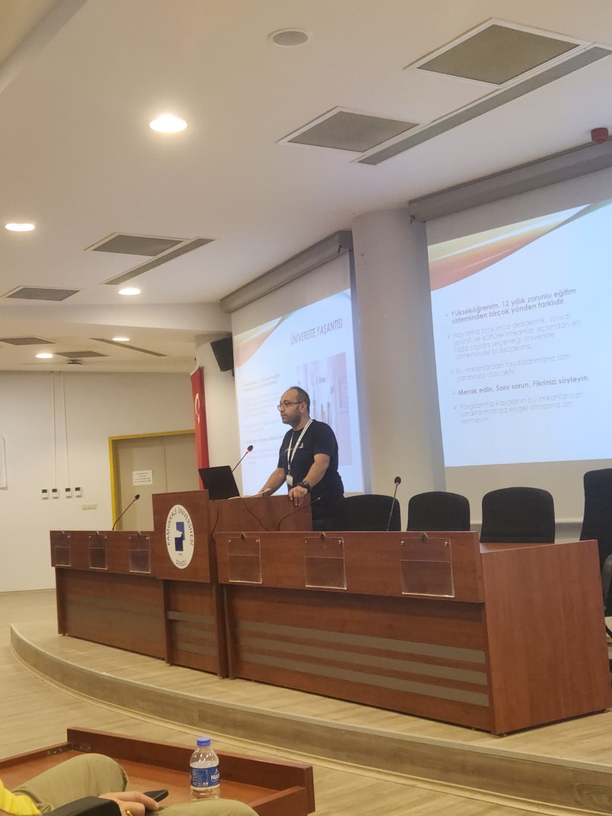 Bölümümüze Yeni Kayıt Yaptıran Öğrencilerimiz için Oryantasyon Programı Gerçekleştirildi Güncellenme Tarihi: 19 Eylül 2025 2025-2026 Eğitim-Öğretim yılında aramıza yeni katılan öğrencilerimiz için 18.09.2025 tarihinde bölüm hocalarımız ve öğrencilerimizin katılımıyla bir oryantasyon programı düzenlendi. Pamukkale Üniversitesi Psikolojik Danışma ve Rehberlik Eğitim, Uygulama ve Araştırma Merkezi ile Biyomedikal Mühendisliği Bölümü tarafından hazırlanan sunumlarla, Bölüm Başkanımız Prof. Dr. Sevilay ÇETİN ve oryantasyon sorumlusu Öğr. Gör. Ramazan Çağrı KUTLUBAY, yeni öğrencilerimize üniversitemizi, fakültemizi ve bölümümüzü tanıttılar. Programda ayrıca Biyomedikal Mühendisliği Topluluğu Başkanı da topluluğun faaliyetleri hakkında bilgi vererek yeni öğrencilerimize topluluğu tanıttı. Yeni öğrencilerimize akademik hayatlarında başarılar diliyoruz.