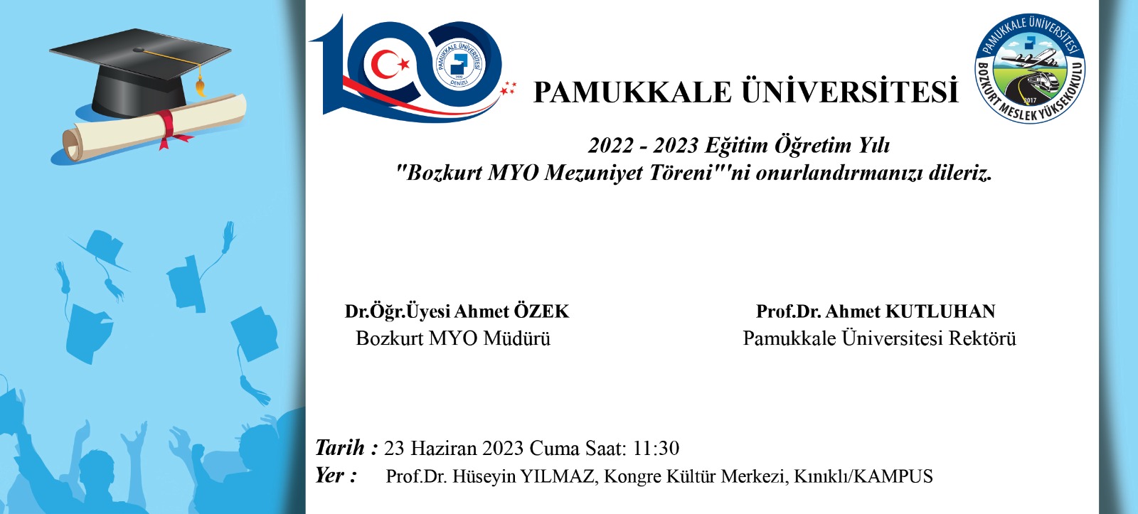 Bozkurt Meslek Yüksekokulu 2022-2023 Eğitim-Öğretim Yılı Mezuniyet Töreni Tören 09 Temmuz 2023 PAÜ Prof. Dr. Hüseyin Yılmaz Kongre ve Kültür Merkezi Tören Fotoğrafları için TIKLAYINIZ...