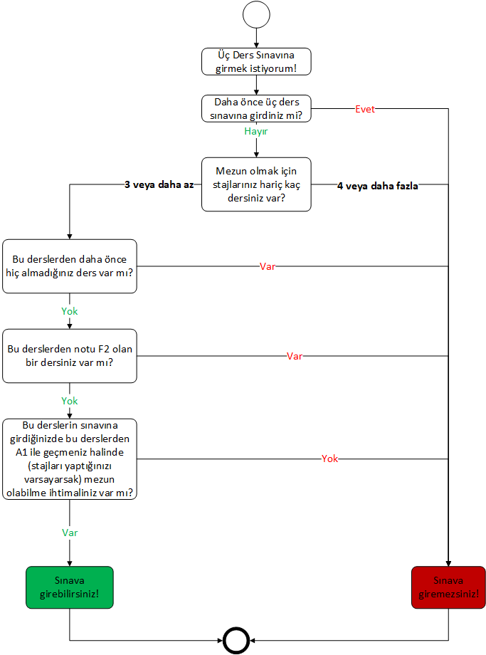 - Üç ders sınavını öğrenci bir kez kullanabilir.
