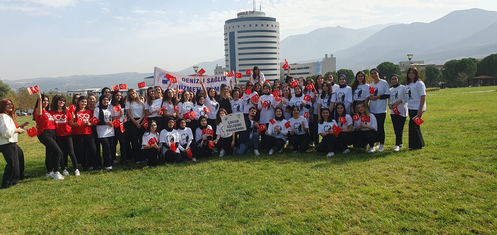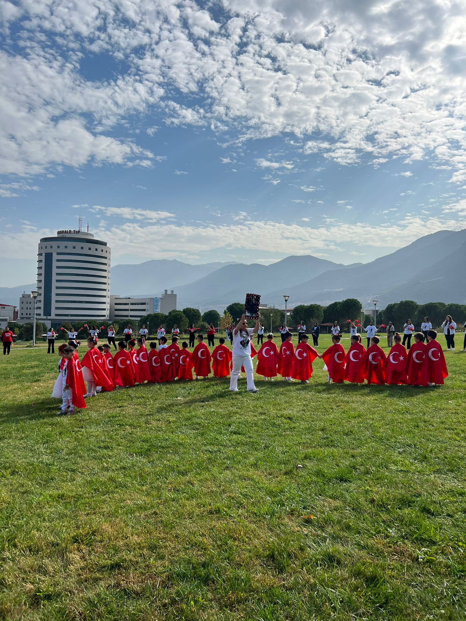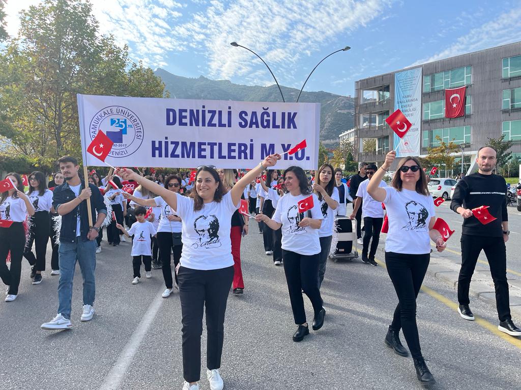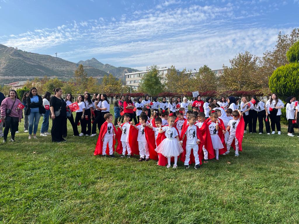 “Cumhuriyetimizin 100. yılı 100 çocukla büyük bir coşkuyla kutlandı.” Etkinlik 02 Kasım 2023 - 31 Aralık 2024 PAÜ Sahne Alanlar: Denizli Sağlık Hizmetleri Meslek Yüksekokulu Çocuk Gelişimi Programı “Cumhuriyetimizin 100. yılı 100 çocukla büyük bir coşkuyla kutlandı.” Pamukkale Üniversitesi Denizli Sağlık Hizmetleri Meslek Yüksekokulu Çocuk Gelişimi Programı’nın hazırladığı, Hasan Veli Üğür Anaokulu öğretmen ve çocukların davetli olarak katıldıkları “Cumhuriyetimizin 100. yılını 100 çocuk ile kutluyoruz” etkinliği gerçekleştirildi. Etkinliğe Hasan Veli Üğür Anaokulu’ndan 100 çocuk katıldı. Etkinlik Pamukkale Üniversitesi Gölbahçe alanından marşlar eşliğinde kortej yürüyüşü ile başladı. Yürüyüş Denizli Sağlık Hizmetleri Meslek Yüksekokulu Müdürü Doç. Dr. Pınar İli, Çocuk Gelişim Programı Bölüm Başkanı Prof. Dr. Özlem Körükçü, bölüm öğretim elemanları Dr. Öğr. Üyesi Hande Güngör, Öğr. Gör. Dilek Uludağ Kodal ve Hasan Veli Üğür Anaokulu Müdürü Münire Kiriş ile birlikte 5 yaş öğretmenleri ve öğrencileri ile gerçekleştirildi. Sonrasında “Cumhuriyetimizin 100. Yıl etkinliği” Denizli Sağlık Hizmetleri Meslek Yüksekokulu önünde Atatürk ve Cumhuriyet temalı dans etkinlikleri ile devam etti. Etkinlikte Minik Damlalar ve Mutlu Çocuklar sınıflarının hazırlamış olduğu “Atatürk Çocukları”, Doğadaki Sesler sınıfının hazırladığı “Canımız Feda” dans gösterisi ile Deniz Yıldızları sınıfının “Türk Genciyiz” gösterileri büyük ilgi gördü. Son olarak 100. yıl etkinliği, Minik Kalpler sınıfının Pamukkale Üniversitesi Çocuk Gelişimi Programı öğrencileri ile birlikte yaptıkları “İzmir Marşı” gösterisi ile son buldu. “Cumhuriyetimizin 100. yılını 100 Çocuk ile kutluyoruz” etkinliği, kampüsteki öğrenci ve personel tarafından ilgiyle ve merakla izlendi.