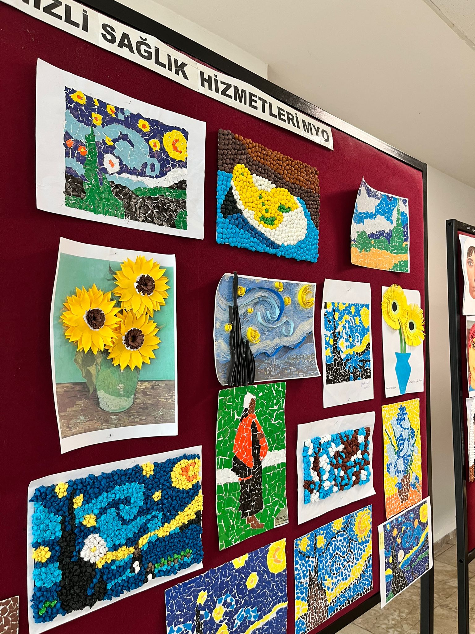 Denizli Sağlık Hizmetleri Meslek Yüksekokulu Çocuk Gelişimi programı öğrencileri 25-26 Aralık 2024 tarihlerinde Yüksekokul D Blok zemin katında “Okul Öncesi Uygulanan Tekniklerle Dünyaca Ünlü Ressamlar” temalı bir resim sergisi açtı.