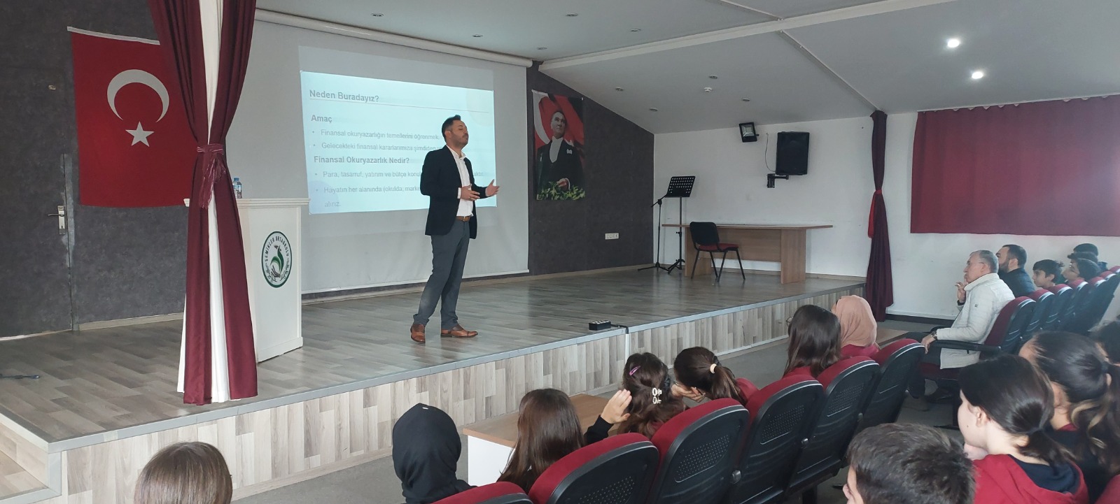 The talks, which took place at TEV Anatolian High School by Assist. Prof. Dr. Habib KÜÇÜKŞAHİN, at Şehit Burhan Acar Imam Hatip Middle School by Assist. Prof. Dr. Bilal GÖDE, at Şemikler Middle School by Lecturer Dr. İbrahim Korkmaz KAHRAMAN, and at Merkezefendi Municipality Anatolian Imam Hatip High School by Dr. Göksal Selahatdin KELTEN, covered fundamental financial concepts such as budgeting, saving, borrowing, investing, and insurance. Topics such as income-expense balance, budgeting techniques, money management, the culture of saving, distinguishing between needs and wants, digital consumption traps, credit card pitfalls, and the importance of being a conscious consumer were discussed interactively. By emphasizing that small savings can turn into large gains in the long term, and sharing practical information students can use in their daily lives, the talks aimed to contribute to the growth of young individuals who are better prepared for the future.