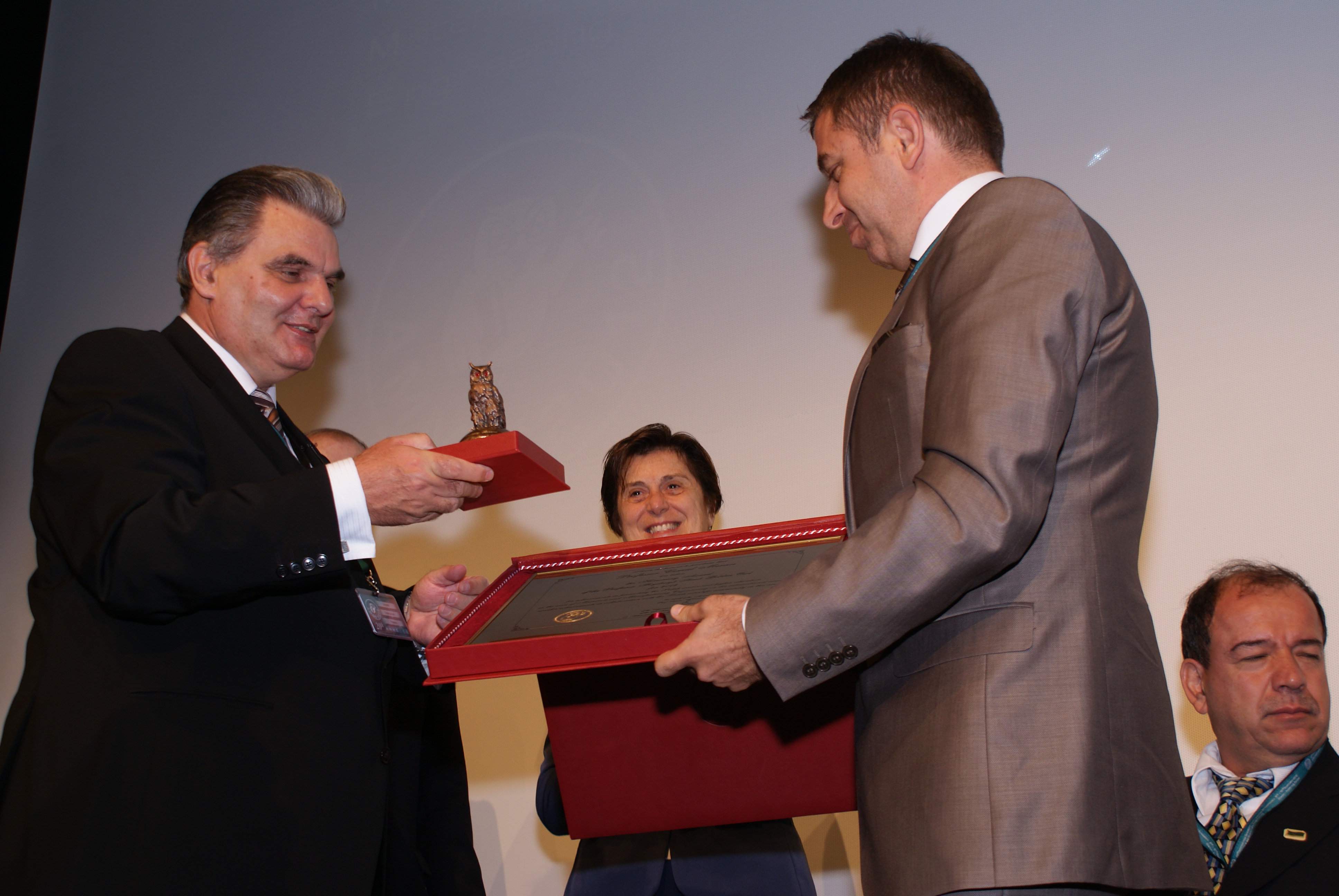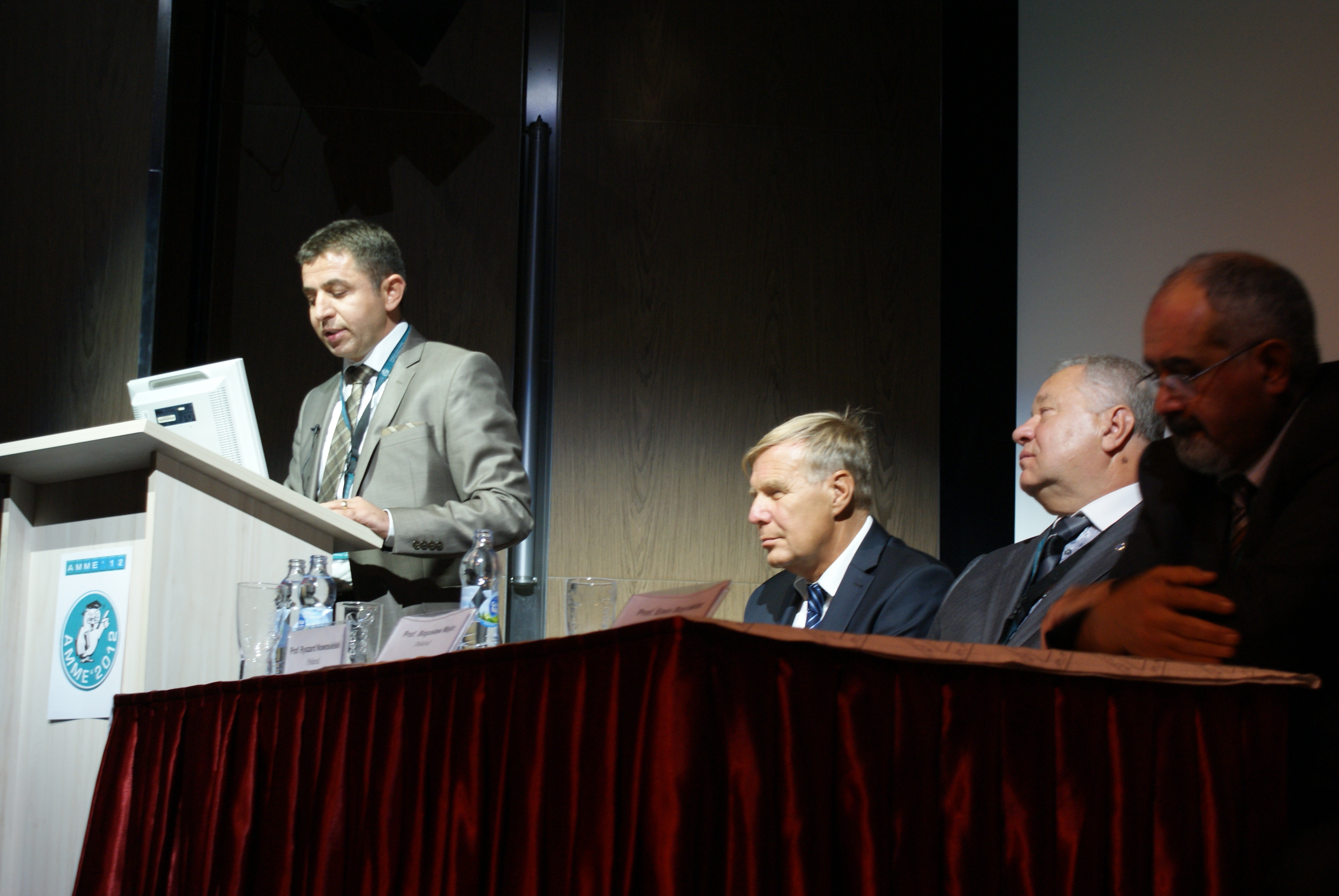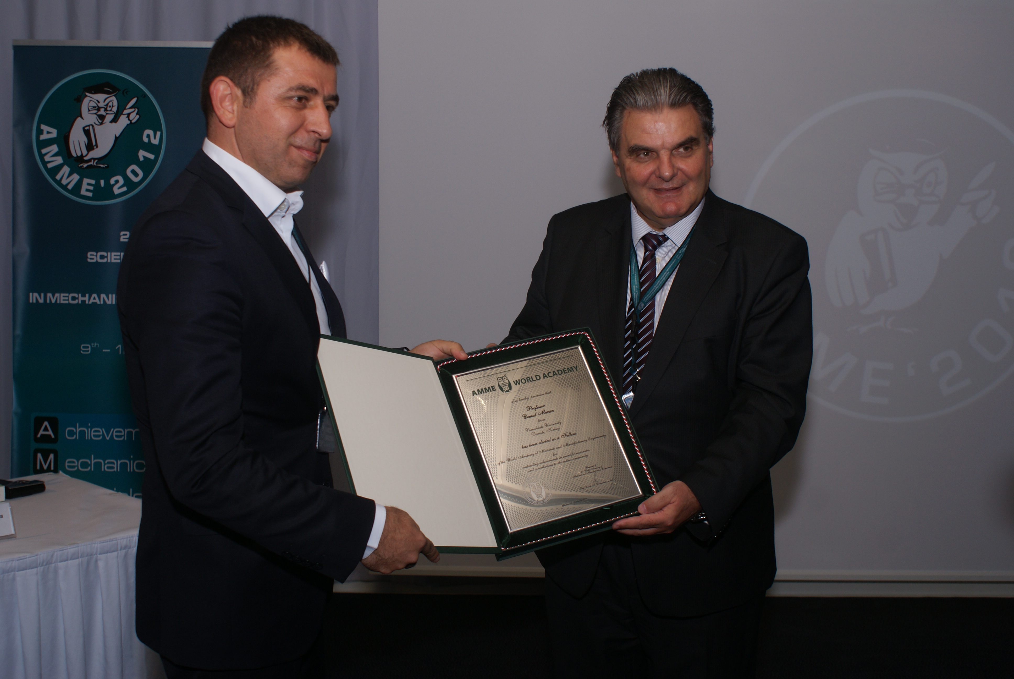 AMME World Academy'ye Fellow (daimi kurul üyesi) olarak seçilmeme dair diplomanın Akademi Başkanı Prof.Dr. Leszek Dobrzanski'nin elinden alırken, 11.09.2012, Polonya