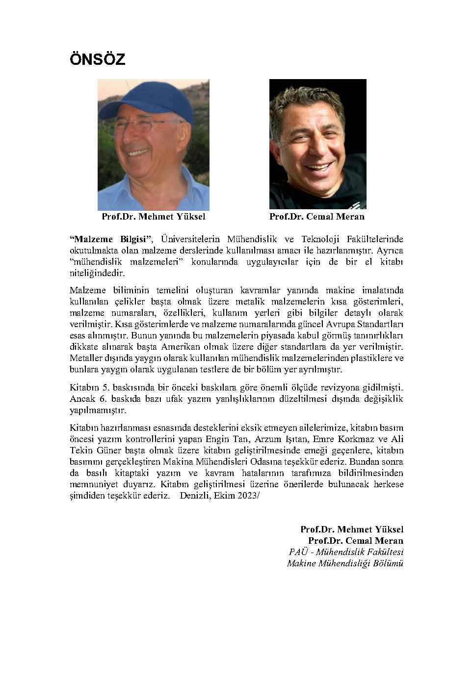 Yüksel, M., Meran, C., Malzeme Bilgisi, MMO yayını, Yayın No: MMO/545/3, Ekim 2023, Ankara, 591 Sayfa (6. Baskı)