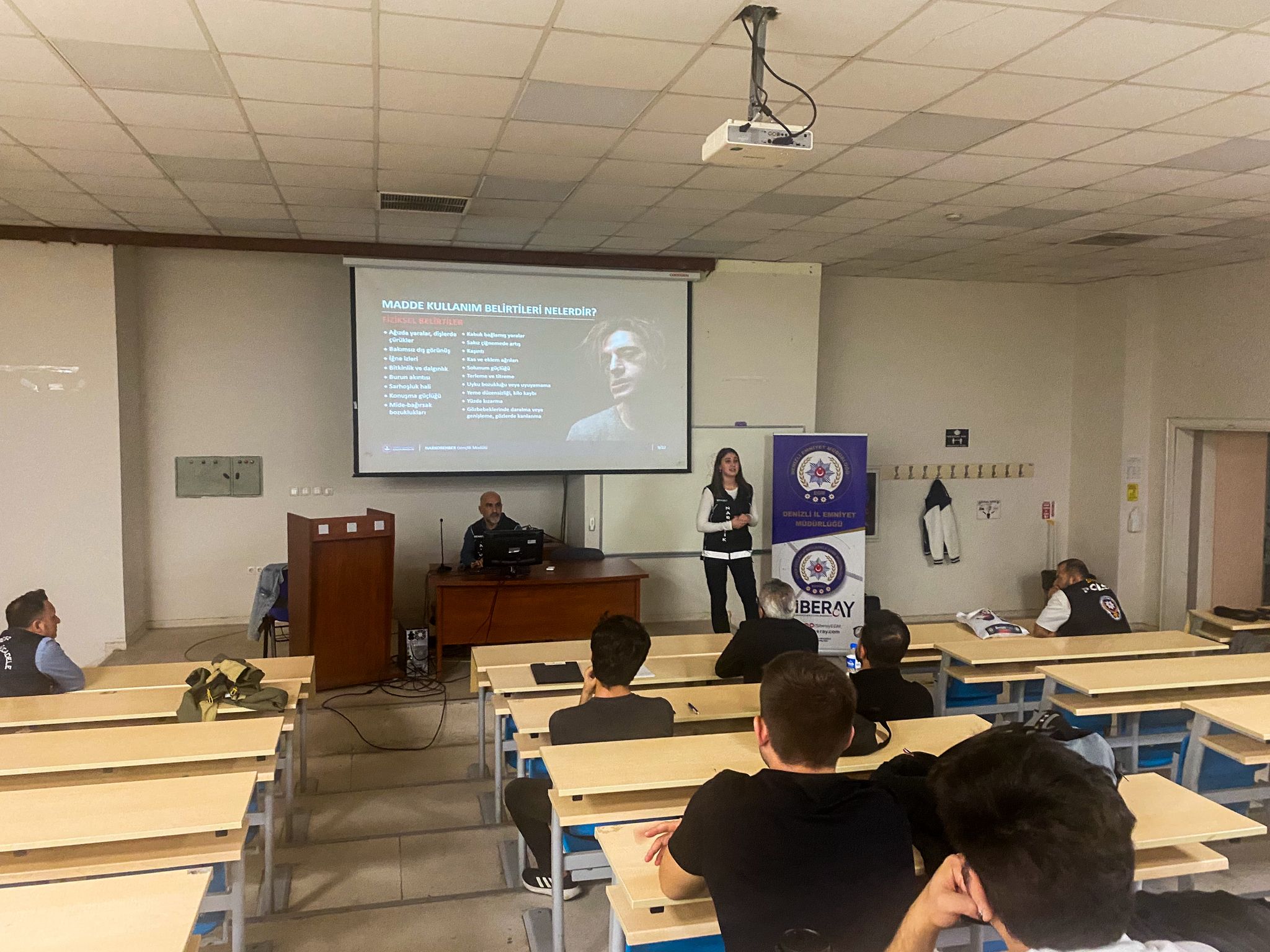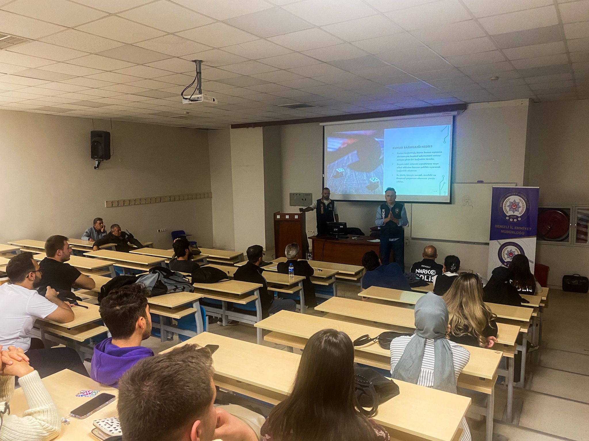 Denizli İl Emniyet Müdürlüğü Narkotik Suçlarla Mücadele Şube Müdürlüğü ile Siber Suçlarla Mücadele Şube Müdürlüğü personelleri tarafından fakültemiz son sınıf öğrencilerine yönelik “Madde Bağımlılığı ile Mücadele ve Narkotik Suçlar” ile “Yasadışı Bahis ve Kumar Bağımlılığı” konularında bilgilendirici bir seminer düzenlenmiştir.