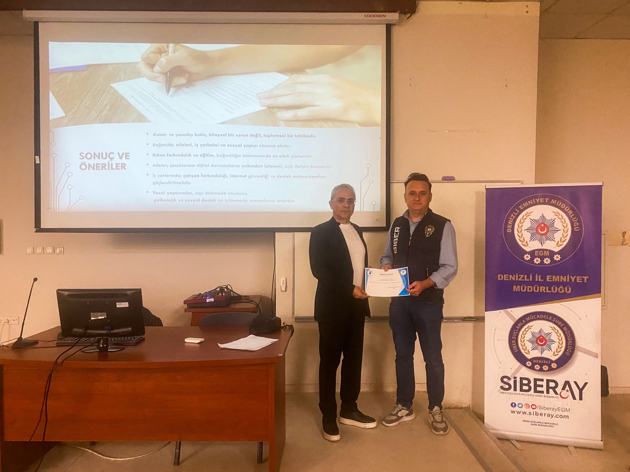 Bu değerli ve farkındalık oluşturan seminer için Denizli İl Emniyet Müdürlüğü Narkotik Suçlarla Mücadele Şube Müdürlüğü ve Siber Suçlarla Mücadele Şube Müdürlüğü personellerine teşekkür ederiz.