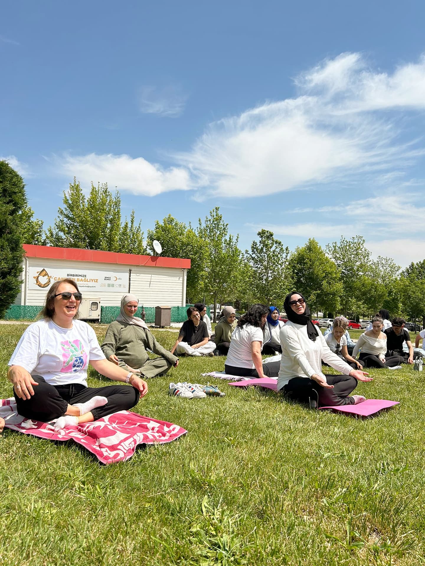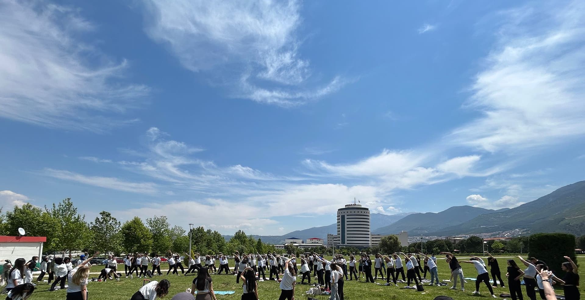 Fizyoterapist, Osteopat ve Yoga Eğitmeni Nurten KARAKAYA rehberliğinde gerçekleştirilen etkinlikte, katılımcılar çimlerin üzerinde, dağ manzarası eşliğinde açık havada yoga uygulamaları yaptı. Temel yoga hareketlerinin katılımcılara uygulamalı olarak aktarıldığı etkinlikte beden esnekliği, duruş farkındalığı ve nefes kontrolü gibi konulara dikkat çekildi. Öğrencilerin sınav dönemi öncesi yaşadığı stres ve kaygının azaltılması, aynı zamanda iş hayatında stresle baş etme konusunda farkındalık kazanmaları amacıyla düzenlenen etkinlik, hem bilgilendirici hem de rahatlatıcı yönüyle büyük ilgi gördü. Etkinliğin sonunda öğrenciler müzik eşliğinde halay çekerek güne neşeli ve enerjik bir kapanış yaptı.