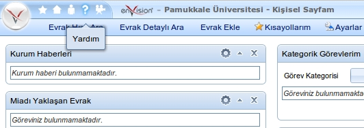 Doküman Yönetim Sistemi içinde bulunduğunuz menü ile ilgili yardıma ulaşmak için ilgili sayfa da sol üst kısımda bulunan "Yardım" ikonuna tıklamanız yeterlidir.