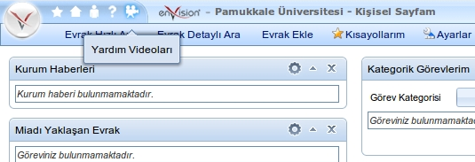 Doküman Yönetim Sistemi ile Yardım videolarına sistem içinde ana sayfada sol üstte bulunan ikonlardan erişebilirsiniz.