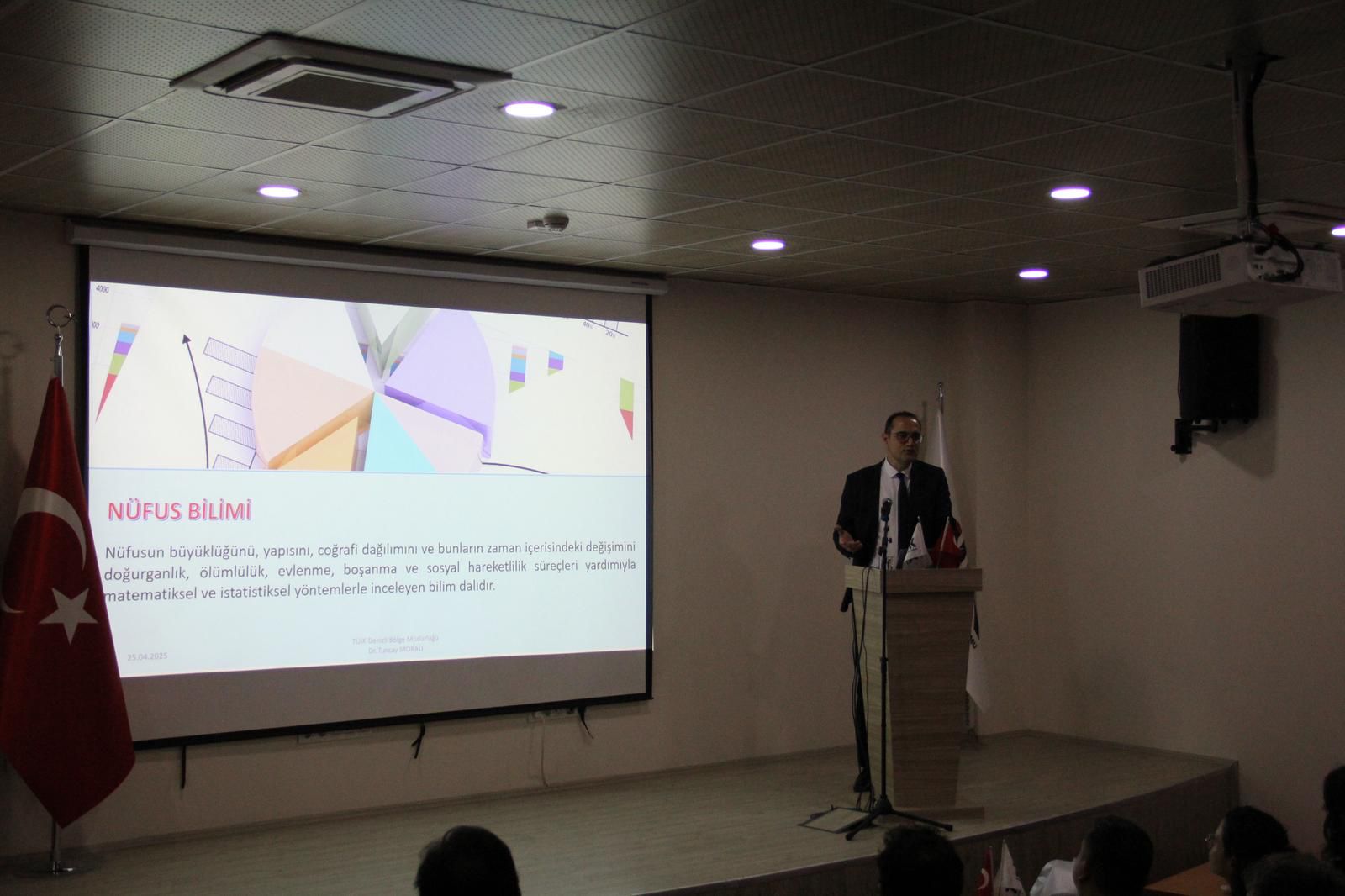 Ziyarette TÜİK Denizli Bölge Müdürü Özer Coşkun, kurumun yapısı ve faaliyetleri hakkında bilgilendirici bir sunum gerçekleştirdi. Program, Dr. Tuncay Moralı'nın “Nüfus Bilimi ve Nüfus Projeksiyonları” başlıklı sunumuyla devam etti. Ardından Mehmet Aygün “TÜFE Nedir ve Nasıl Hesaplanır?” konulu sunumuyla ekonomik göstergelerin hesaplanmasında kullanılan yöntemler hakkında bilgi verdi.