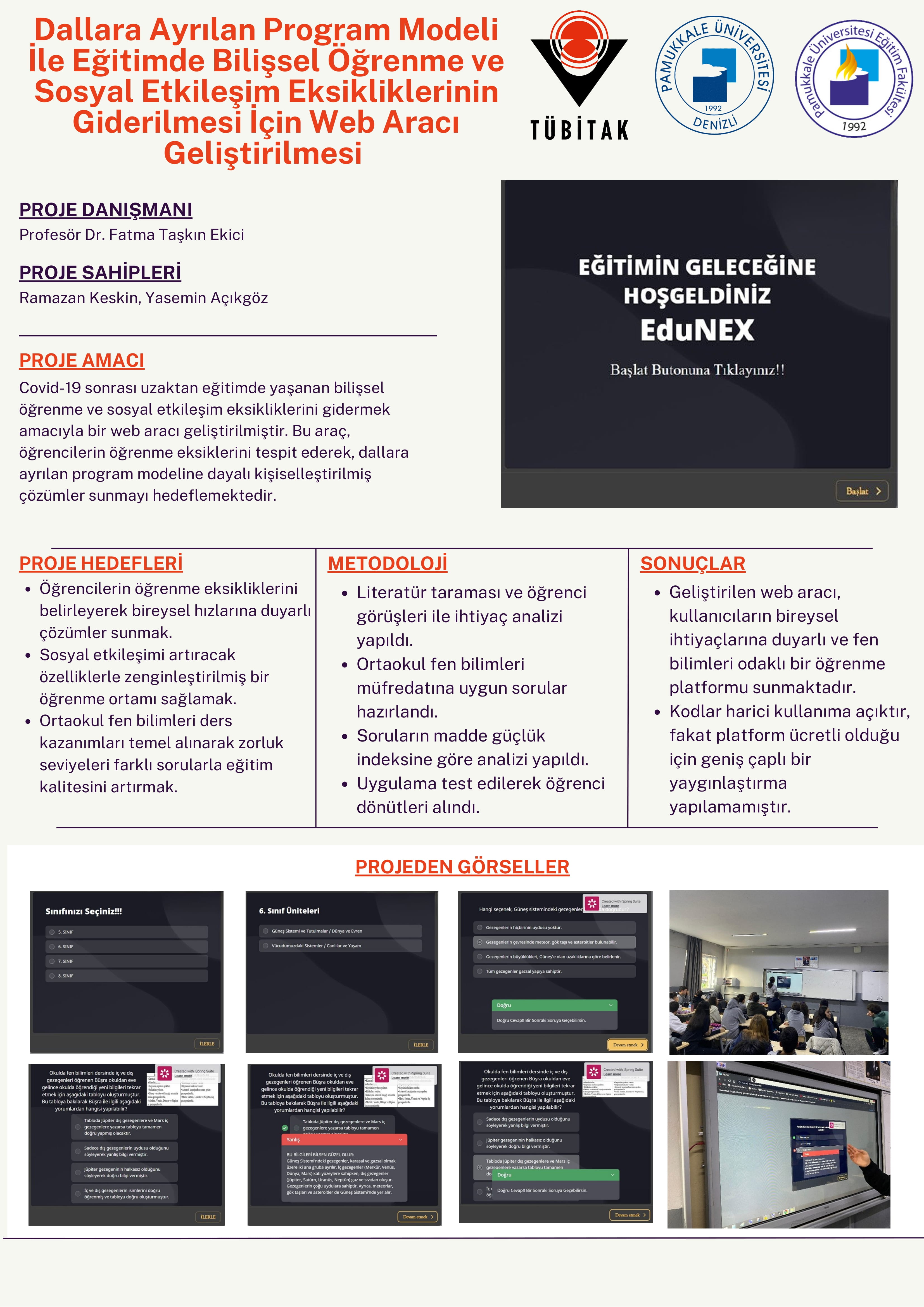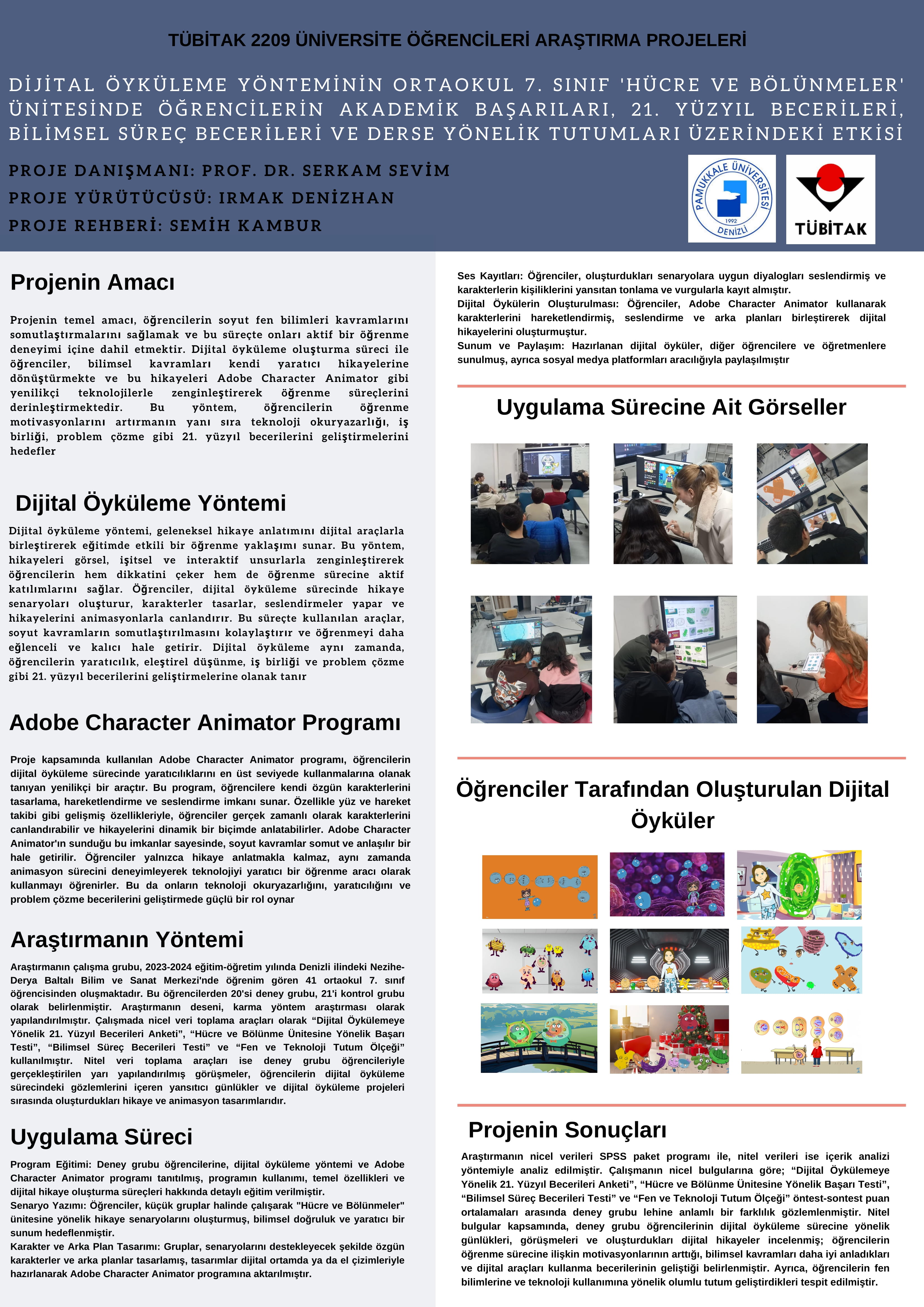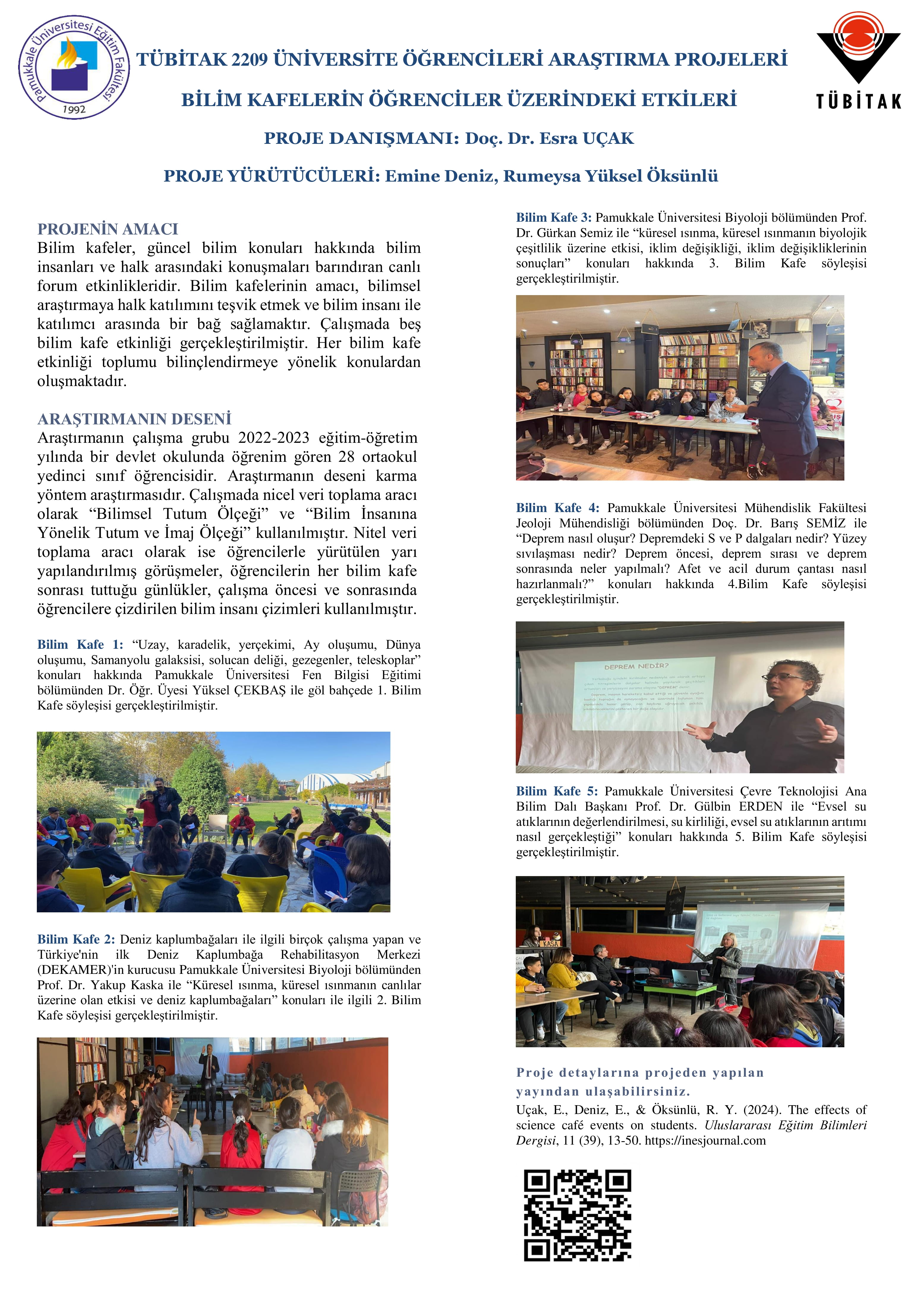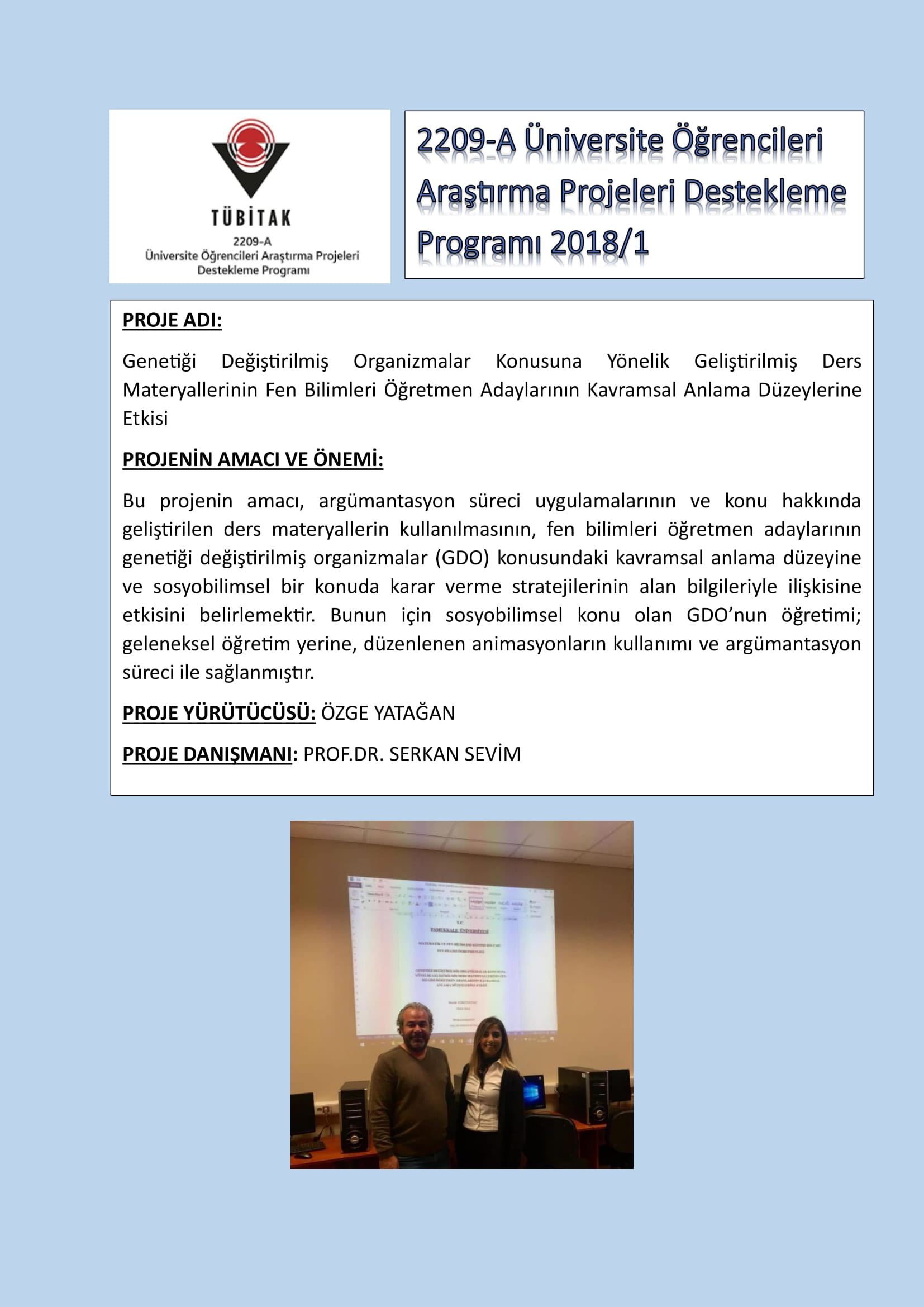 Anabilim dalımız öğretim üyeleri danışmanlığında öğrencilerimiz tarafından yürütülen ve TÜBİTAK-2209