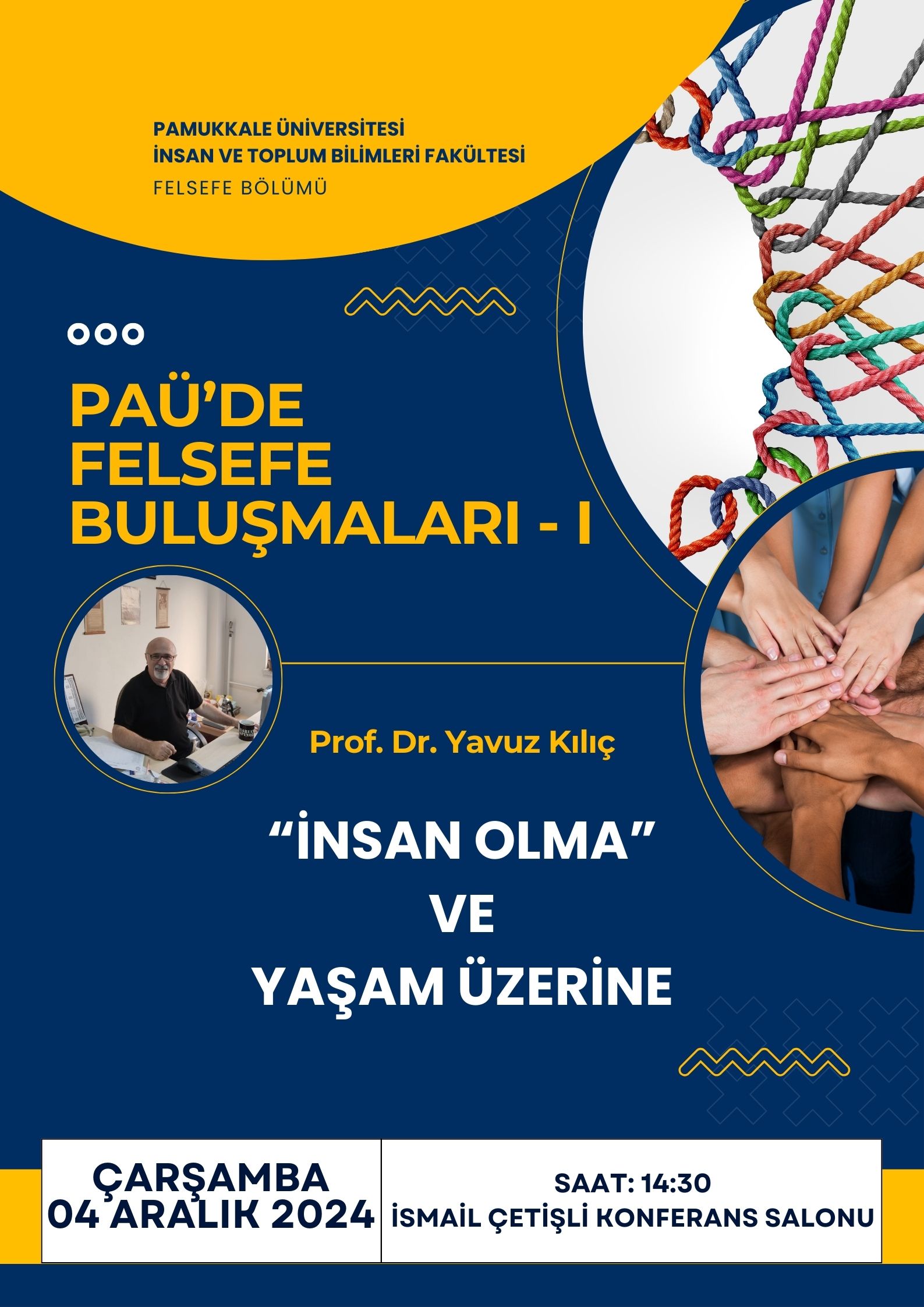 Pamukkale Üniversitesi İnsan ve Toplum Bilimleri Fakültesi Felsefe Bölümünün “PAÜ’DE FELSEFE BULUŞMALARI” serisinin ilki 04.12.2024 tarihinde saat:14:30’da İsmail Çetişli Konferans Salonu’nda gerçekleştirilecektir.
