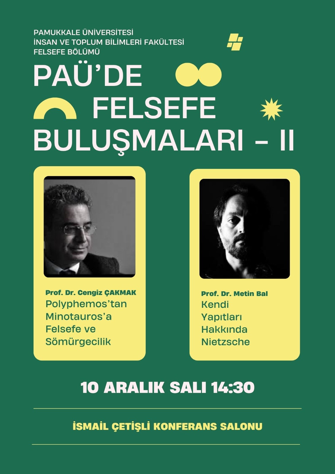 PAÜ'de Felsefe Buluşmaları-II Söyleşi 09 Aralık 2024 - 18 Aralık 2024 İnsan ve Toplum Bilimleri Fakültesi Prof. Dr. İsmail Çetişli Konferans Salonu