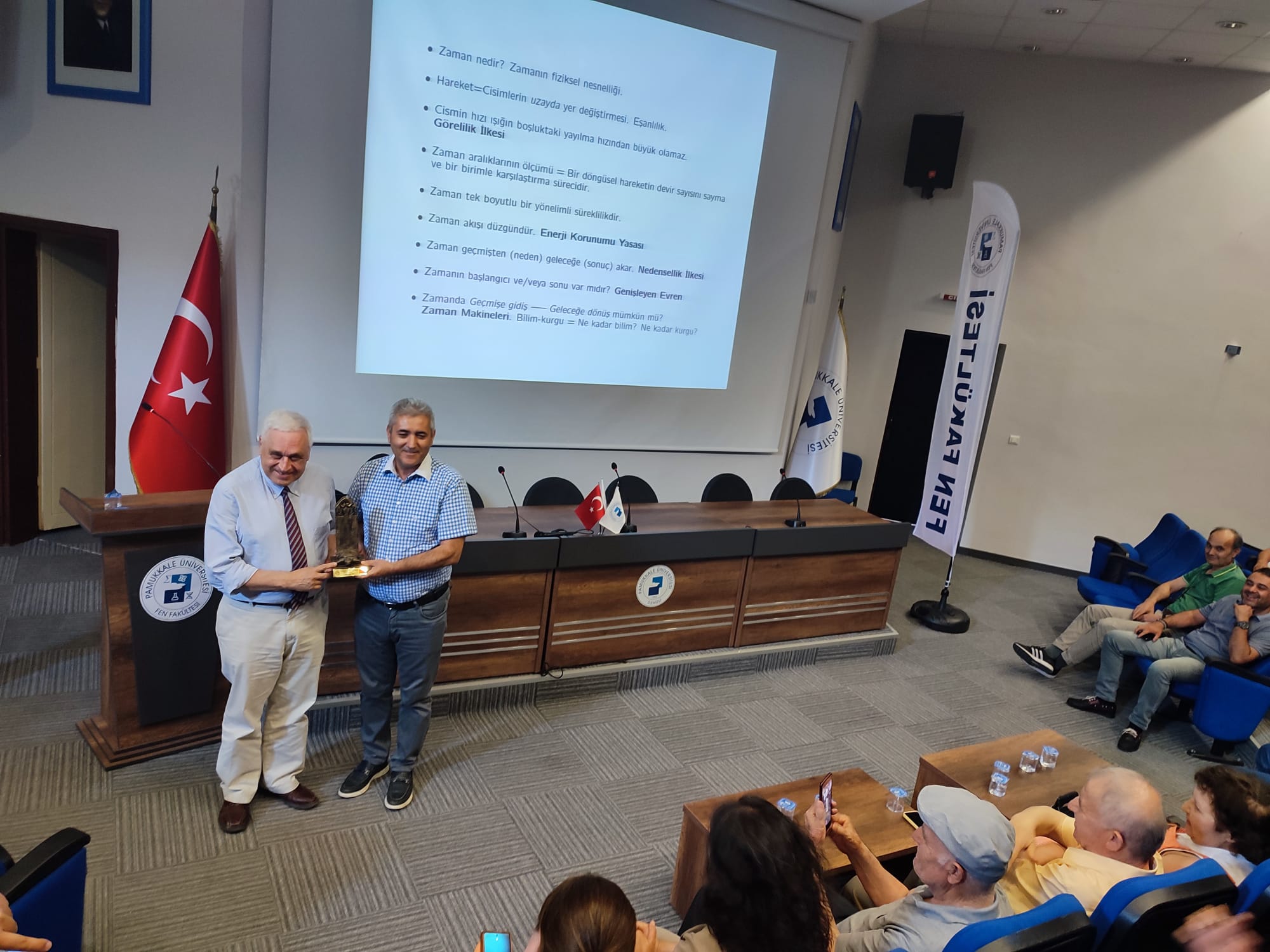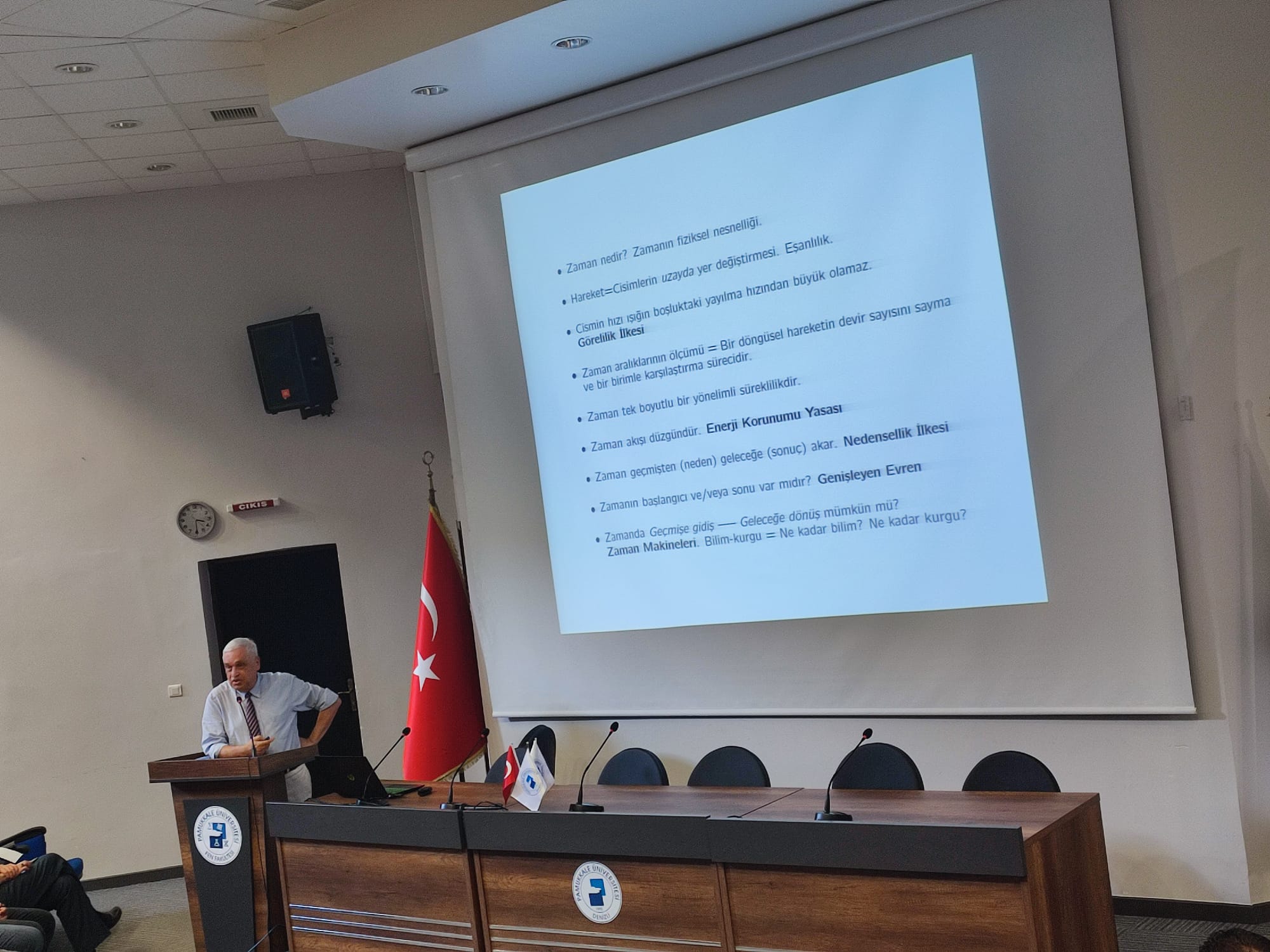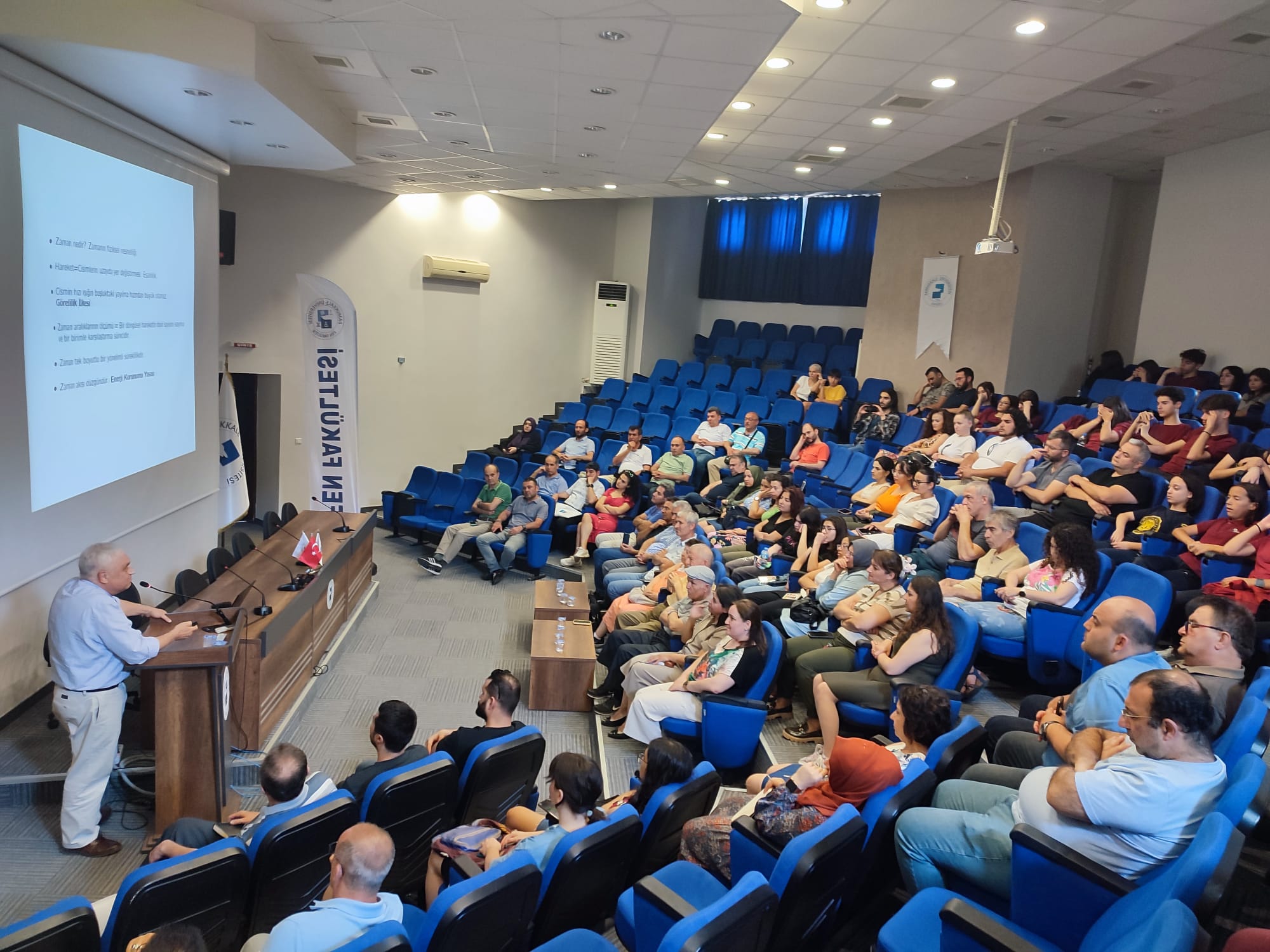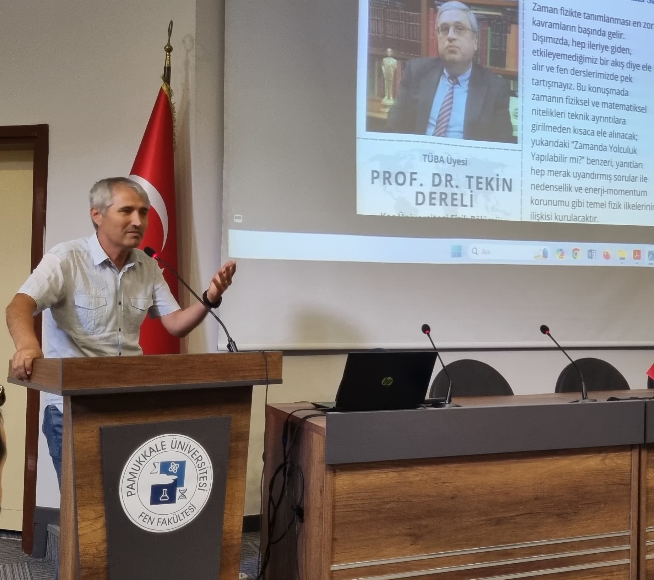 “Zamanda yolculuk mümkün mü?” Semineri Seminer 04 Haziran 2024 İnsan ve Toplum Bilimleri Fakültesi Prof. Dr. İsmail Çetişli Konferans Salonu Sahne Alanlar: TÜBA üyesi Prof.Dr. Tekin Dereli Koç Üniversitesi Fizik Bölümü'nün değerli hocalarından olan TÜBA Üyesi Prof. Dr. Tekin Dereli tarafından "Zamanda Yolculuk: Mümkün mü?" başlıklı seminer, fen fakültesi bünyesinde gerçekleştirildi.