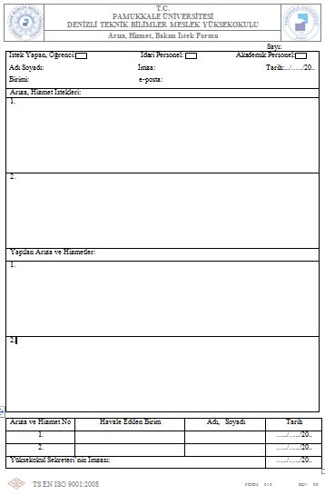 FORM010 ARIZAHİZMETİSTEKFORMU
