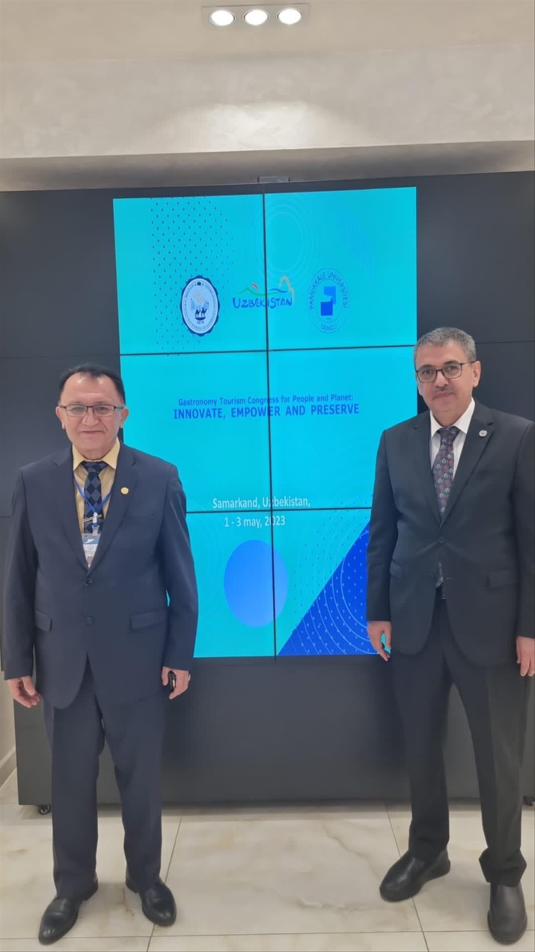Düzenlenen konferansın iş ortağı Pamukkale Üniversitesi Rektörü Prof. Dr. Ahmet Kutluhan yaptığı konuşmada şunları kaydetti: “İpekyolu Üniversitesi ile Pamukkale Üniversitesi’nin gerçekleştirmiş olduğu gastronomi kongresinin öncelikli amacı iki üniversite arasındaki iş birliğini geliştirmektir. Bu iki üniversite arasında yapılan anlaşmanın böylece ilk adımını atmış bulunuyoruz. İkinci amacımız ise Semerkant çok yoğun turist alan bir şehir, Denizli de çok yoğun turist alan bir şehir olduğu için genelde turizimi gelişmiş ülkeye gelen yabancı misafirlerimiz ilk önce o bölgedeki gastronomik gelişmişliğine bakarak şehire notunu verir. İşte bu uluslararası konferanstan beklenen amaç da gezmeye gelen turistlerin gastranomik turizmini geliştirmektir.” şeklinde konuştu.