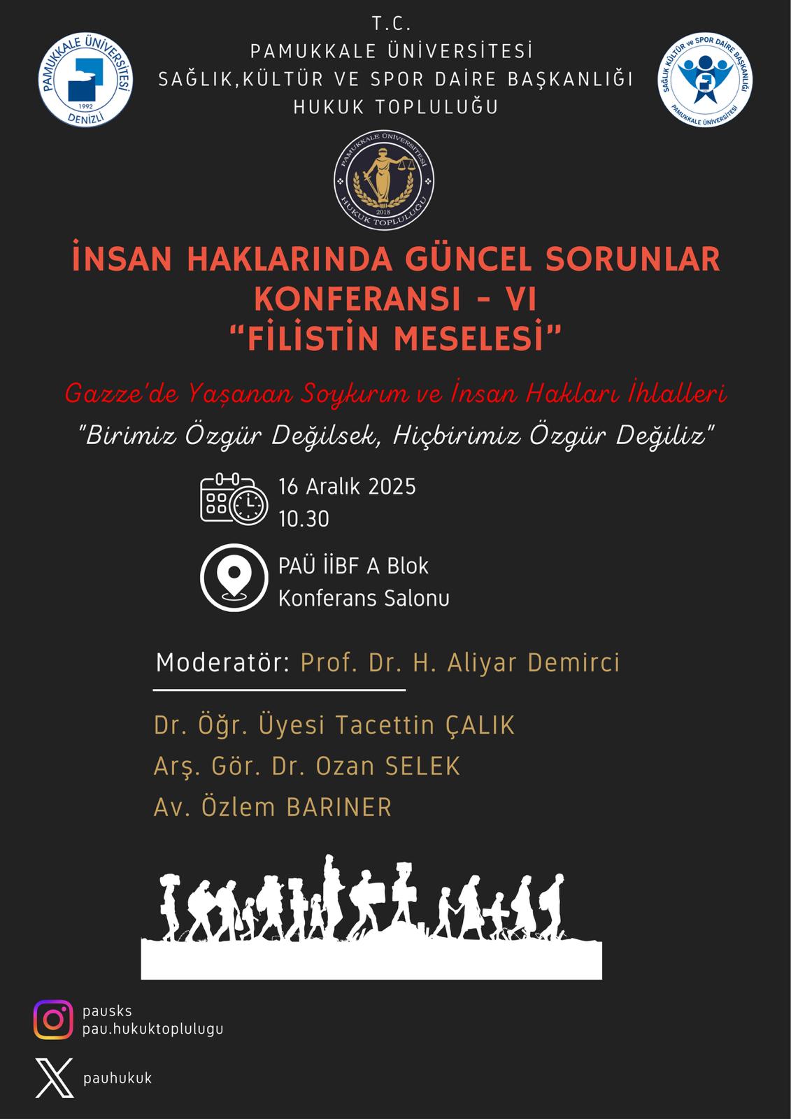 İnsan Haklarında Güncel Sorunlar Konferansı - VI "Filistin Meselesi" Konferans 16 Aralık 2025 İİBF A BLOK KONFERANS SALONU