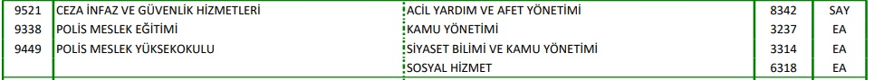Tüm bunlara ek olarak bölüm mezunları, Dikey Geçiş Sınavı ile Acil Yardım ve Afet Yönetimi (SAY), Kamu Yönetimi (EA), Siyaset Bilimi ve Kamu Yönetimi (EA), Sosyal Hizmet (EA) bölümlerine yerleşebilmektedirler.