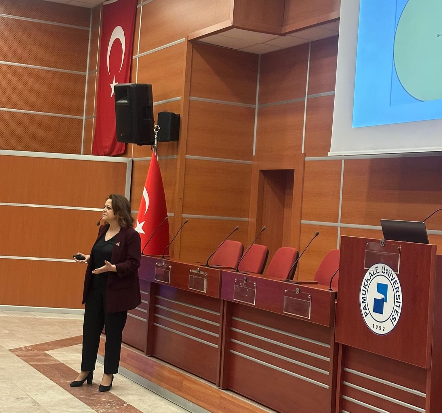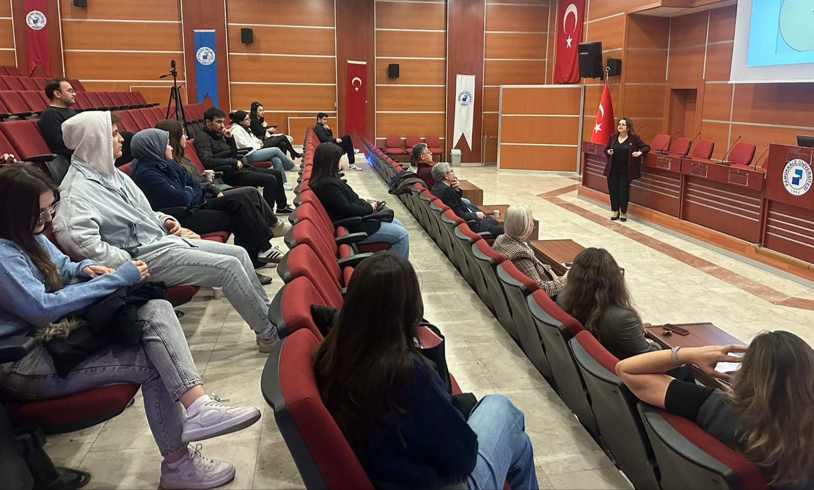 Within the scope of "Midday Seminars" organized by Pamukkale University Faculty of Economics and Administrative Sciences, Assoc. Prof. Nagihan Durusoy ÖZTEPE from the Department of Labour Economics and Industrial Relations delivered her presentation titled "Redefining the Workplace: An Evaluation of the Advantages and Disadvantages of the Remote Work Model" on December 25, 2025, at the Şehit Piyade Teğmen Bekir Can Kerek Conference Hall.