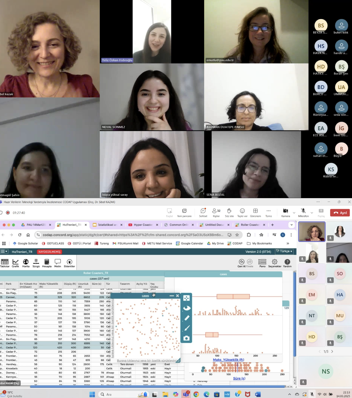 The final event of the day was an online presentation by Assoc. Prof. Dr. Sibel KAZAK, one of the founding faculty members of the Department of Mathematics Education at Pamukkale University. Aimed at participants interested in mathematics, statistics, and technology integration in mathematics education, her talk was titled “Exploring Secondary Data with Technology: The CODAP (Common Online Data Analysis Platform) Application.” We extend our thanks to all participants for helping to create such a rich learning environment.