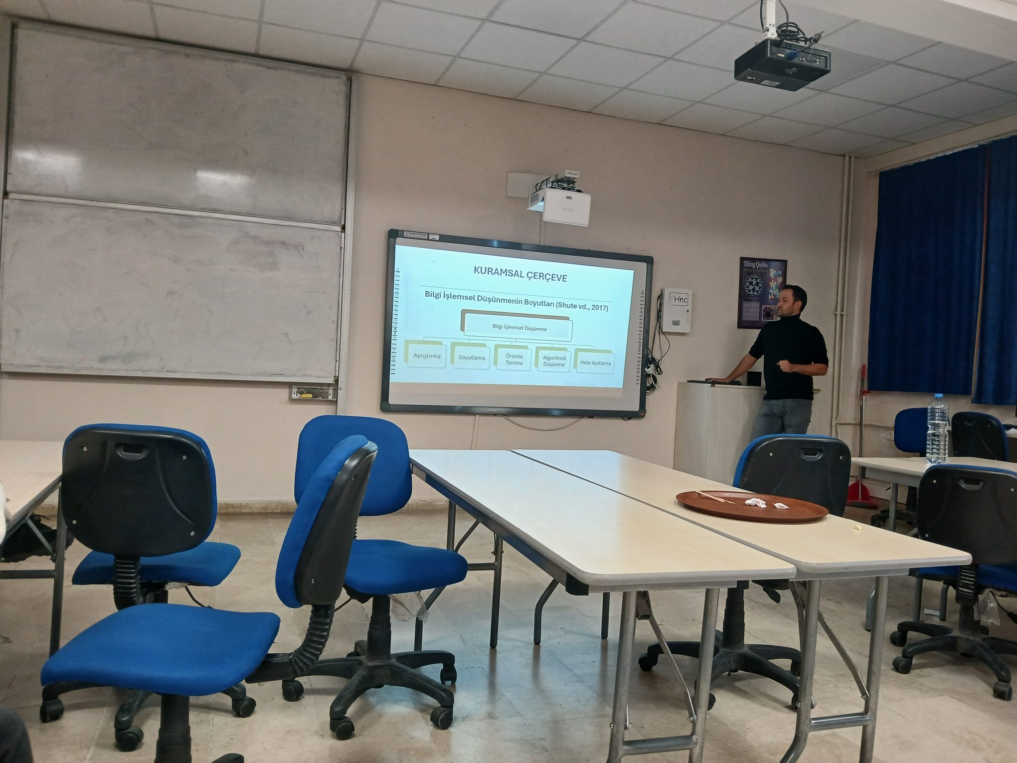 - Doktora öğrencimiz Halil CANAVCI, danışmanı Doç. Dr. Çağlar Naci HIDIROĞLU rehberliğinde önceki dönemde öneri olarak sunduğu “Yapay Zeka ve GeoGebra ile Zenginleştirilmiş Matematiksel Modelleme Sürecinde Bilgi İşlemsel Düşünme” başlıklı çalışmasının araştırma sürecine ve elde ettiği bulgulara ilişkin sunum yapmıştır. Oturumda çalışmanın yöntemsel yapısı, veri analizi süreci ve bulguların alan yazın ile ilişkilendirilmesine yönelik çeşitli görüş ve öneriler paylaşılmıştır.