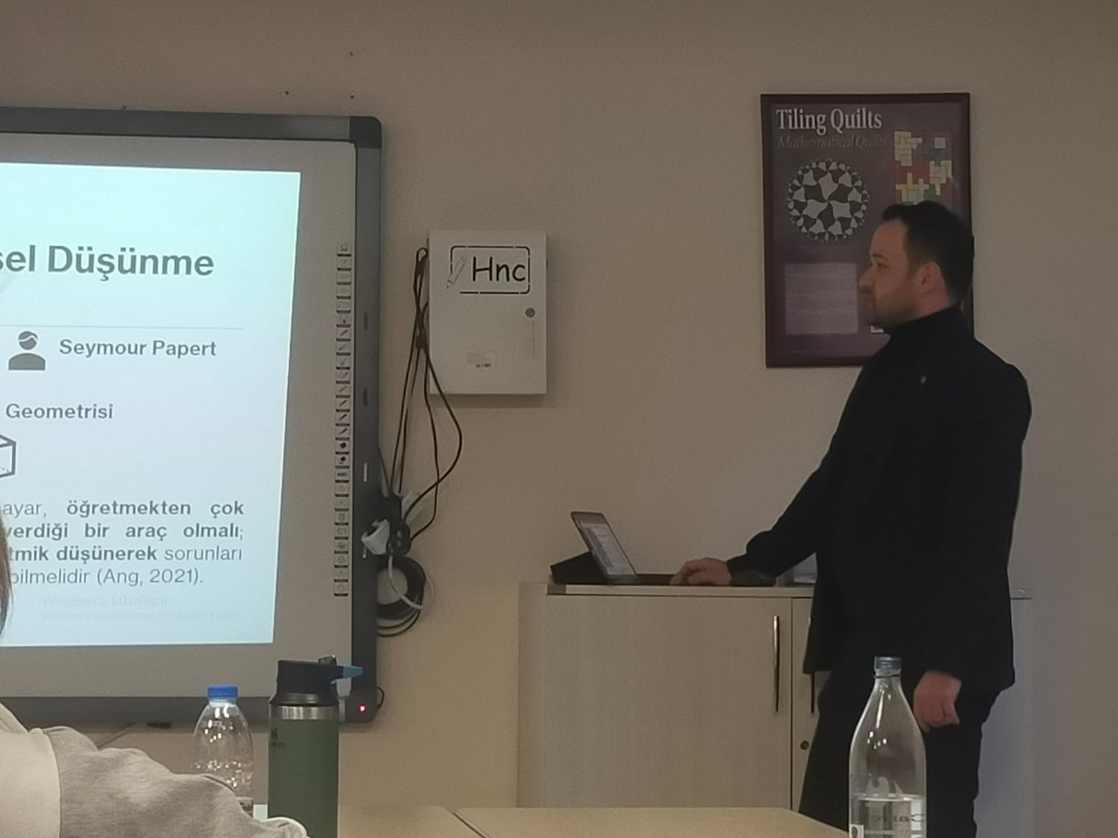 - Doktora öğrencimiz Halil CANAVCI, danışmanı Prof. Dr. Çağlar Naci HIDIROĞLU rehberliğinde planladığı “Bütünleşik STEM Uygulamalarında Öğretmen Adaylarının Bilgi İşlemsel Düşünme Sürecinin İncelenmesi” başlıklı çalışmasının araştırma sürecini ve yöntemsel yaklaşımını sunmuştur. Oturumda veri toplama ve analiz sürecinin yapılandırılması çalışmanın uygulamaya dönük katkıları üzerine görüş ve öneriler paylaşılmıştır.
