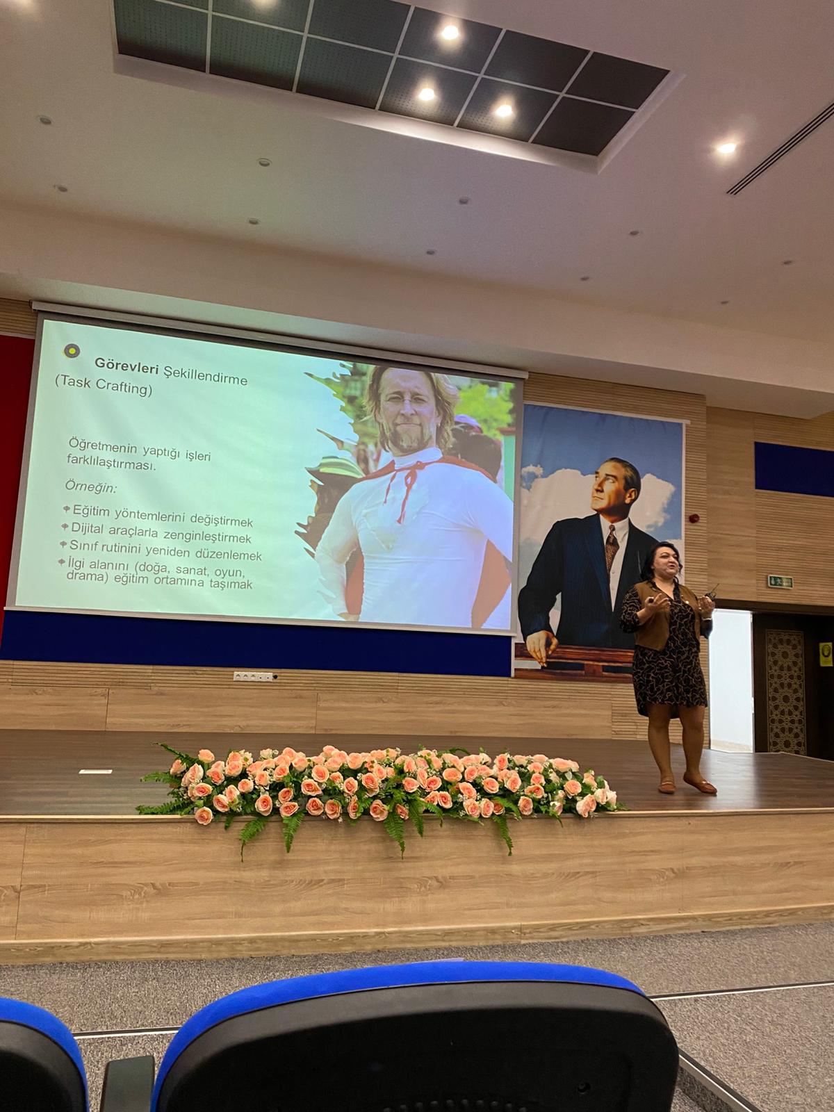 - 13.30-14.30 saatlerinde Melek Sözkesen Konferans Salonu’nda düzenlenen programda ise müzik dinletisi, öğretmen konuşmaları ve özel video gösterimi yer aldı. Öğretim elemanları ve öğretmen adaylarının katıldığı oturumda, öğretmenlik mesleğinin toplumsal sorumluluğu, mesleki etik ve geleceğin öğretmeni olma bilinci üzerine kısa konuşmalar yapıldı. Müzik dinletisi ve hazırlanan video gösterimi, katılımcılara duygusal anlar yaşattı.