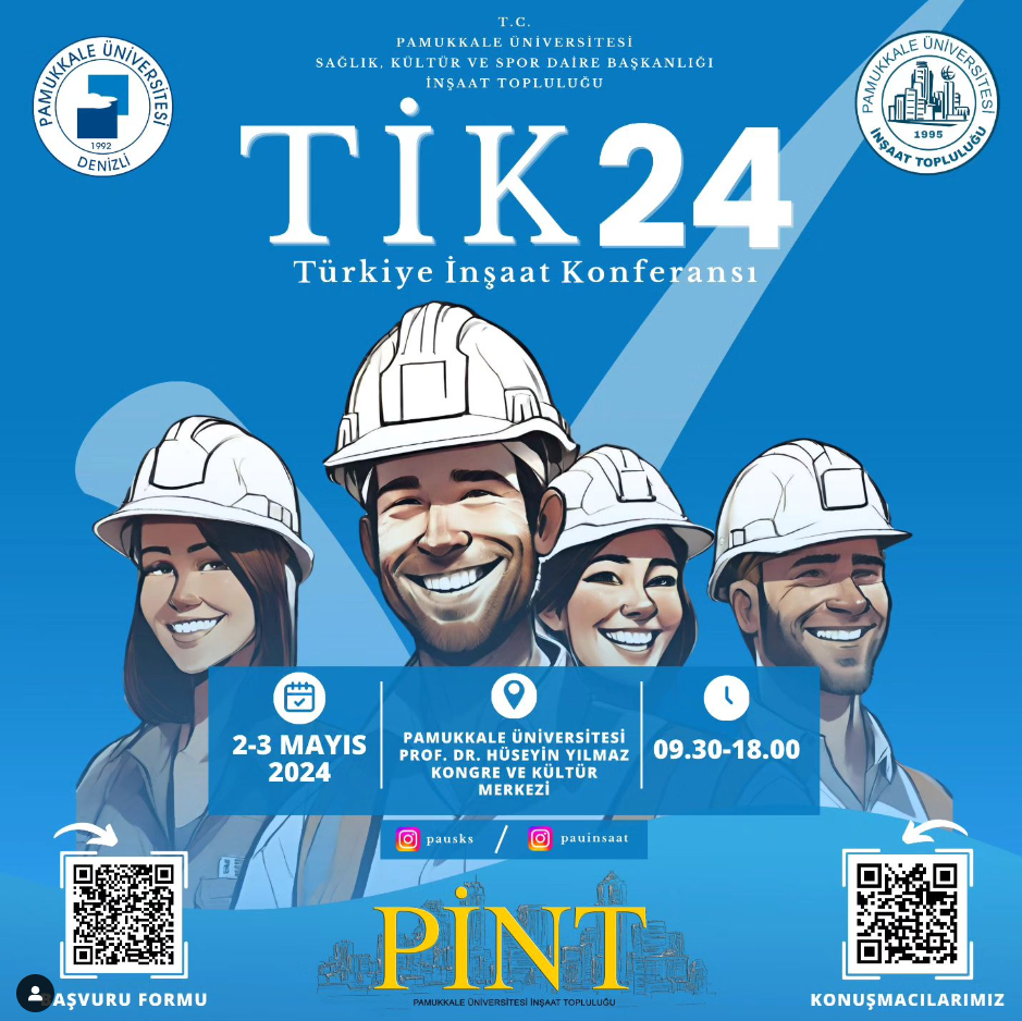 İnşaat Mühendisliği Bölümü öğrenci topluluğu PİNT - Pamukkale Üniversitesi İnşaat Topluluğu tarafından organize edilen Türkiye İnşaat Konferansı, 2-3 Mayıs tarihlerinde Prof. Dr. Hüseyin Yılmaz Kongre Kültür Merkezi'nde gerçekleştirilecektir.
