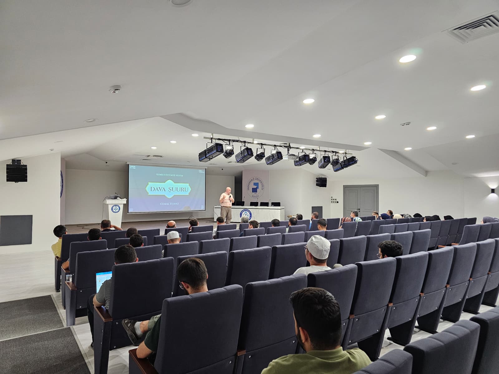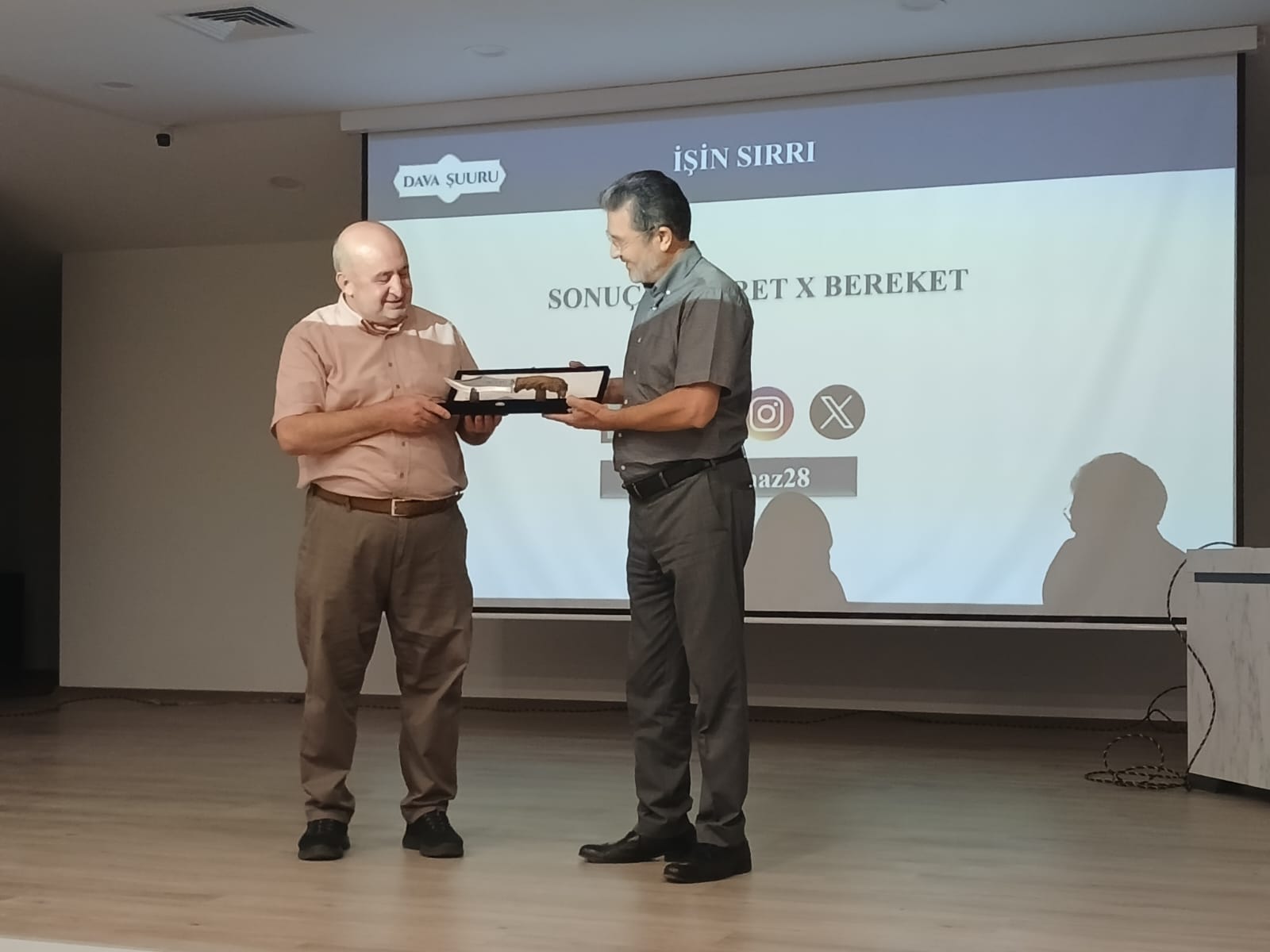 Yaz boyunca çarşamba günleri gelenekselleşen Yaz Konferansları serimizin bu haftaki konuğu Eğitimci Yazar Cemal Yılmaz'dı. 'Bilgiden Derde Dertten Davaya' adlı konferansı ile gönülleri fetheden Yılmaz'ın Enstitü Konferans Salonunda gerçekleşen konferansına enstitü öğretim üyelerimiz, öğrencilerimiz, İlahiyat Fakültesi öğrencileri ve Yatağan'daki İmam-Hatip Lisesi ve ortaokullardan müdür ve müdür yardımcıları katıldılar. Bir müslüman için dava şuuru ve dava bilincinin nasıl olması gerektiği ile ilgili etkili bir sunum gerçekleştiren Cemal Yılmaz'ın sözleri katılımcıları etkiledi. Programın ardından Enstitü Müdürümüz Prof. Dr. Osman Aydınlı tarafından Cemal Yılmaz'a hediye takdiminde bulunuldu.