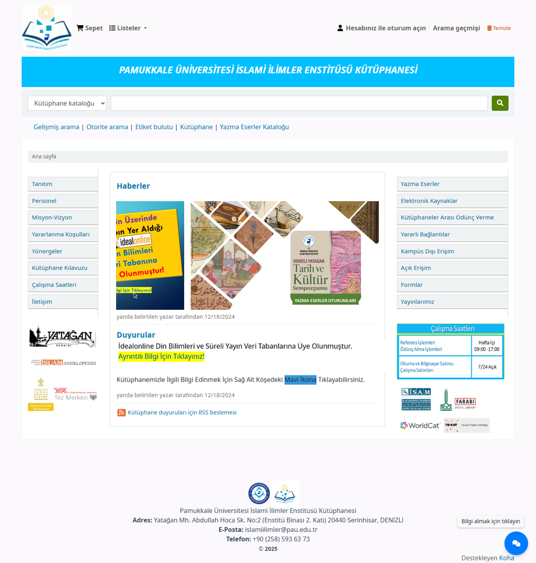 Kütüphane İnternet Sayfası İçin Tıklayın!