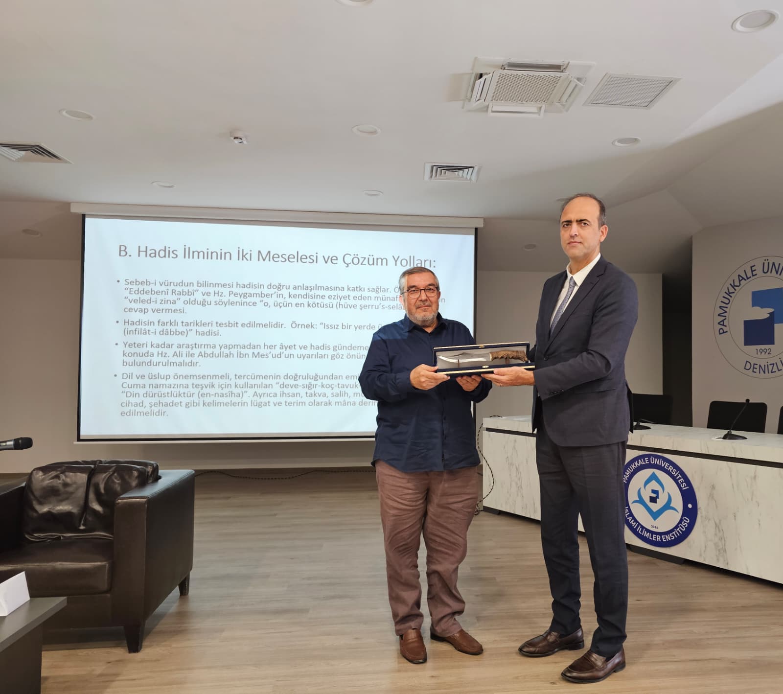 Enstitü Konferans Salonunda gerçekleşen, 29 Mayıs Üniversitesi İlahiyat Fakültesi Öğretim Üyesi Prof. Dr. Zekeriya Güler'in 'Hadisleri Doğru Anlamanın Esasları' adlı konferansı büyük ilgi gördü. Prof. Dr. Cevat Akşit, Rektör Yardımcısı Prof. Dr. İbrahim Türkçüer, İlahiyat Fakültesi Öğretim Üyelerinin yanı sıra Denizli ve İstanbul'daki İlahiyat Fakültelerinden öğrencilerinde katıldığı konferans Hadis Profesörü Zekeriya Güler'in konukların sorularını cevaplandırması ve hediye takdimi ile sona erdi.