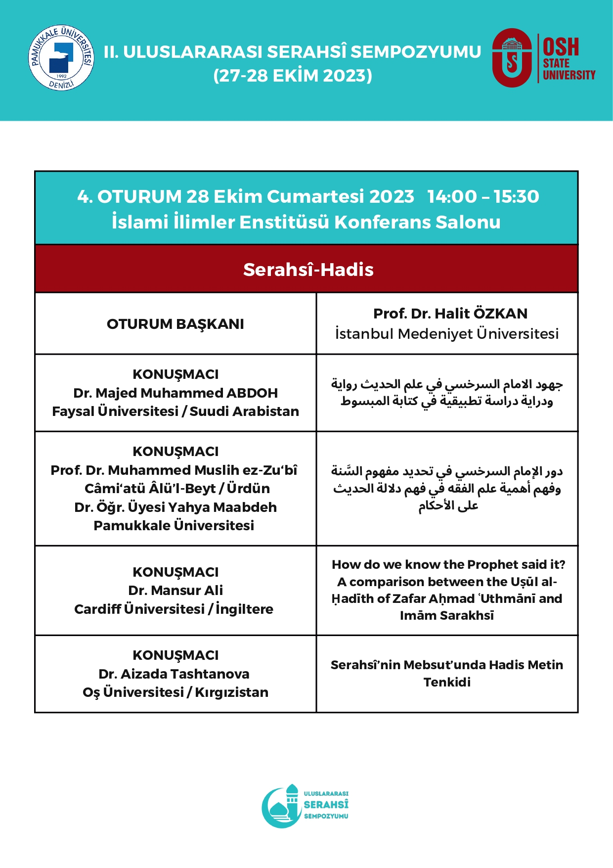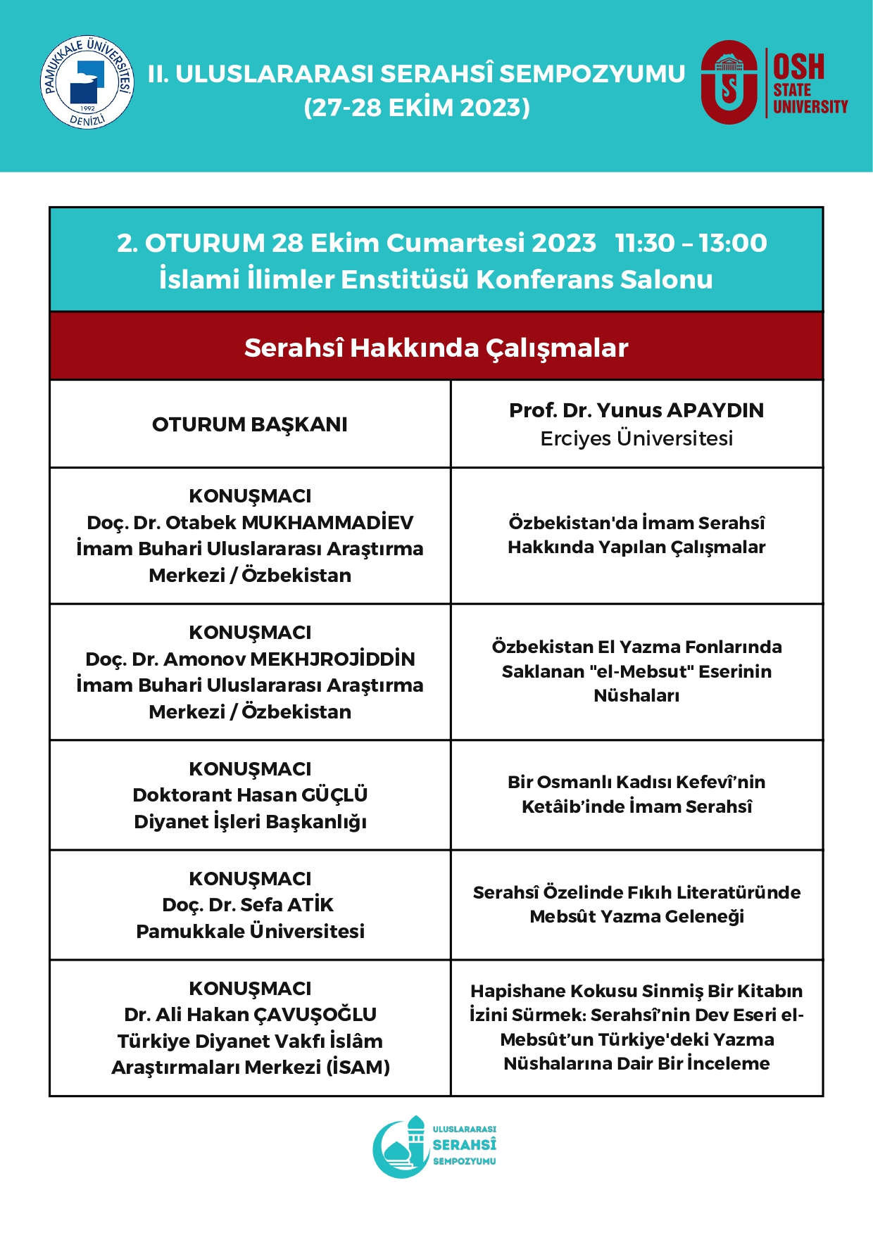 II. Uluslararası Serahsî Sempozyumu (27-28 Ekim 2023)