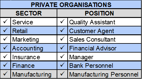 Our graduates work in various positions in institutions / organisations operating in the public and private sectors.