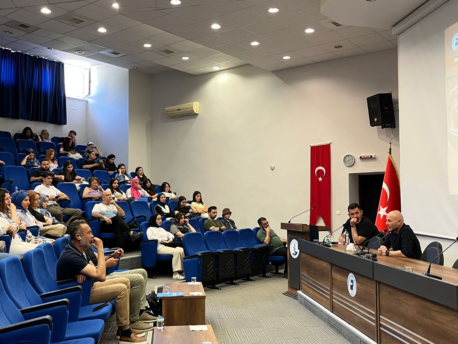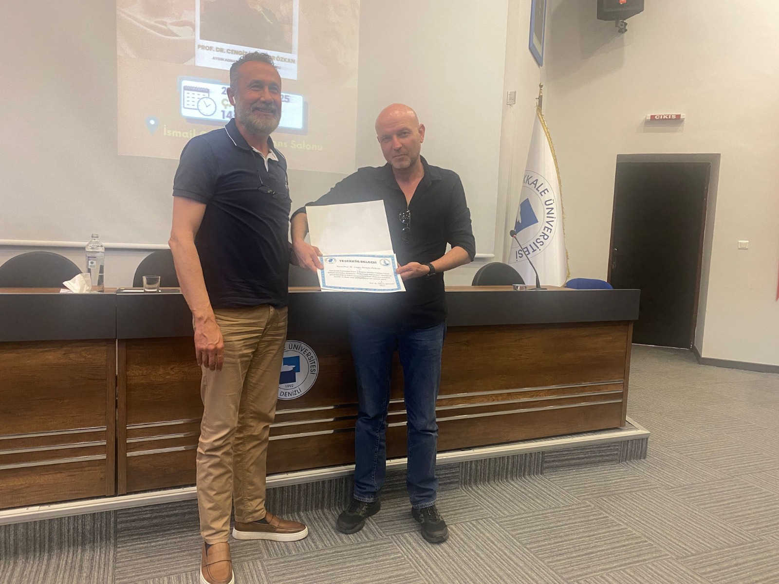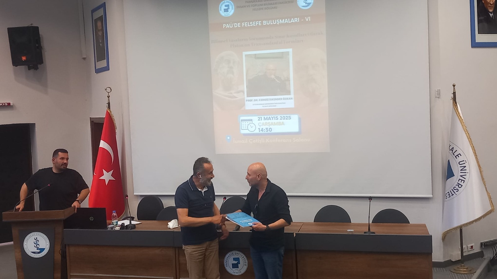 After the talk, attendees contributed with questions, fostering a lively and philosophical discussion. Following the Q&A session, Prof. Dr. Mehmet Ali Sarı, faculty member of the Department of Philosophy at Pamukkale University’s Faculty of Humanities and Social Sciences, presented a certificate of appreciation to the speaker. Additionally, Assoc. Prof. Dr. Alper Bilgehan Yardımcı, Chair of the Event Planning and Organization Committee of the PAÜ Philosophy Department, presented a gift to Prof. Dr. Cengiz İskender Özkan on behalf of the department.