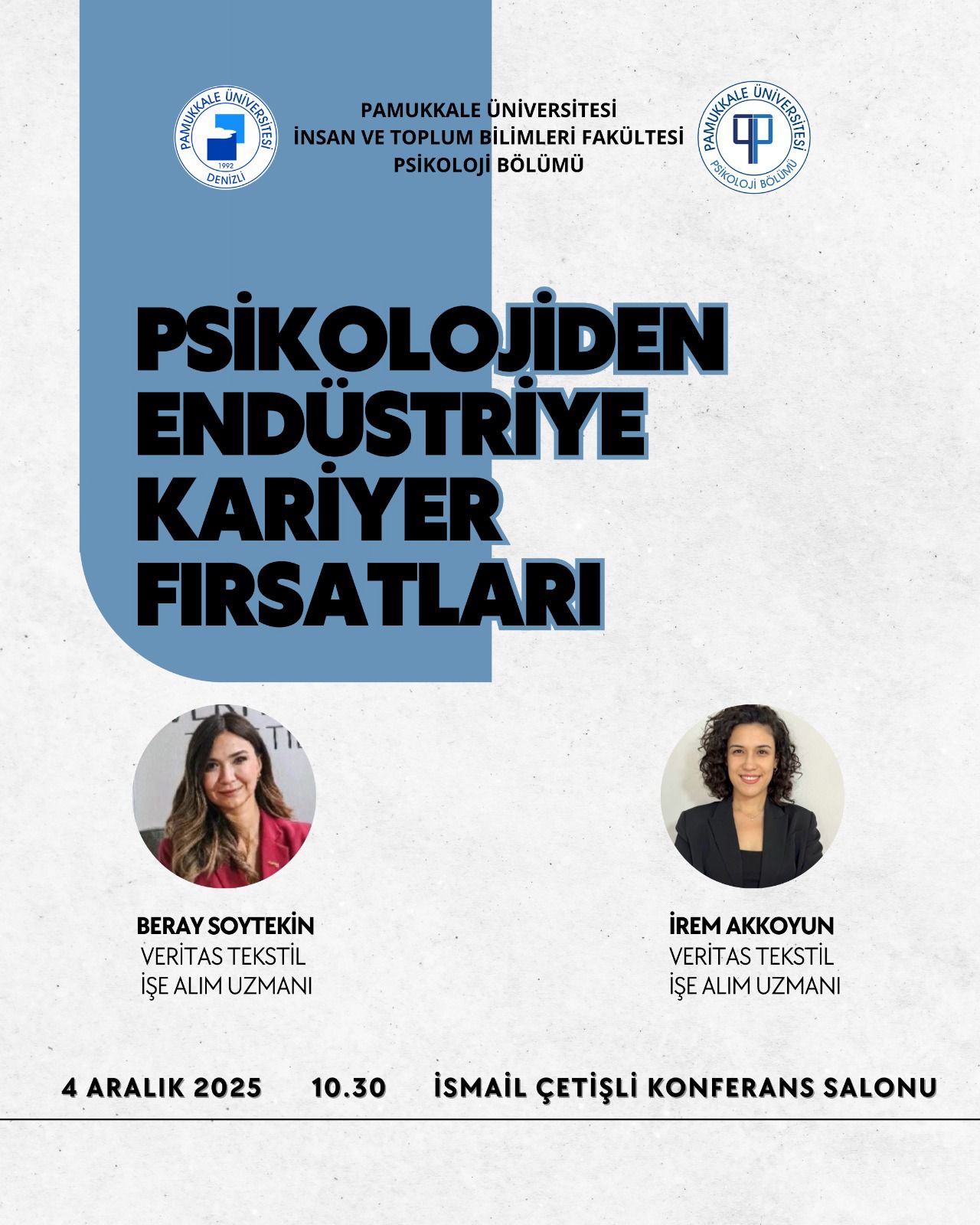 Psikolojiden Endüstriye Kariyer Fırsatları Etkinlik 04 Aralık 2025 İnsan ve Toplum Bilimleri Fakültesi Prof. Dr. İsmail Çetişli Konferans Salonu